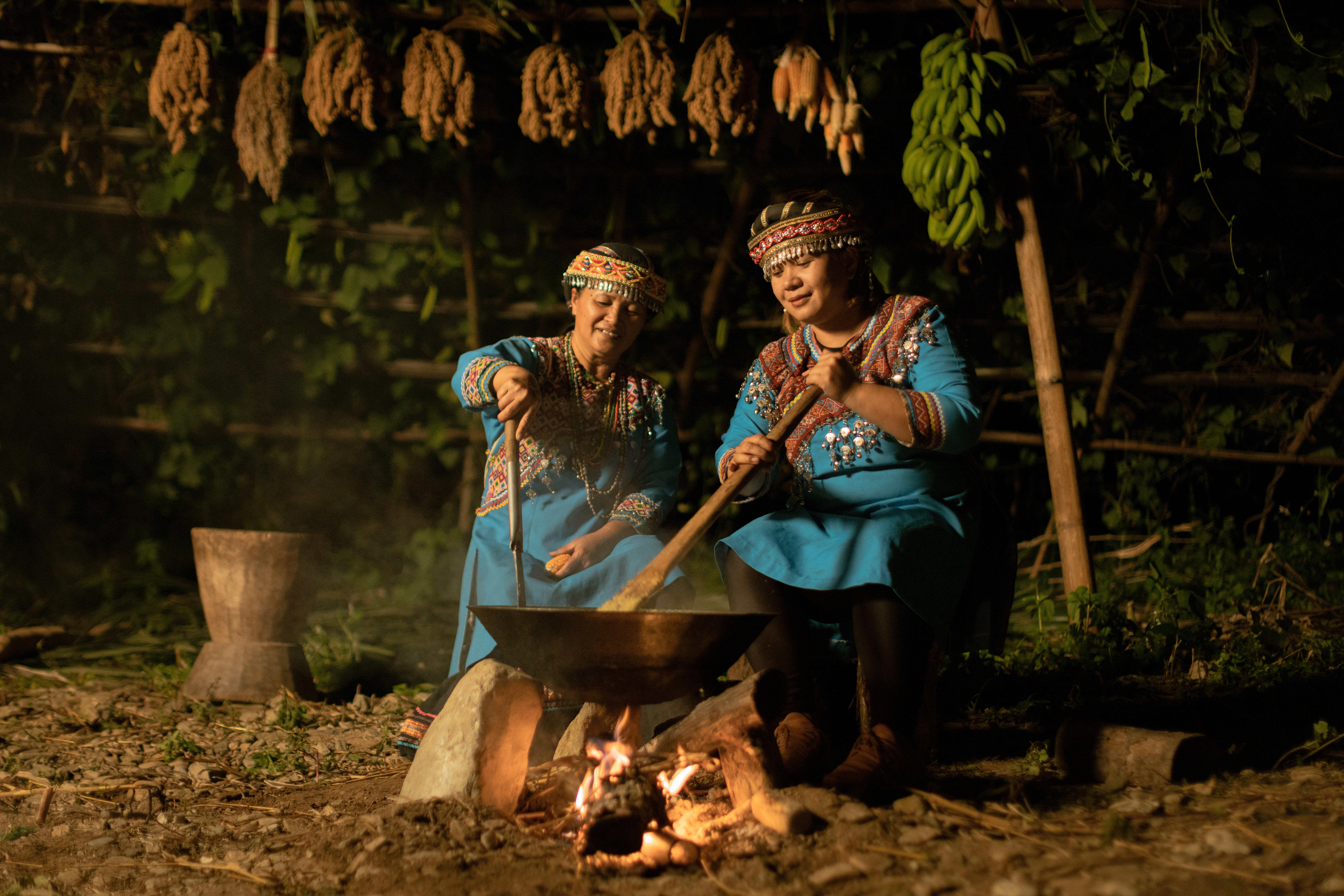 延續去年廣受好評由「崁頂部落」推出的「月光下小米鞦韆餐桌」,以「夜間氛圍」x「微劇場」為賣點,今年以婦女「釀製」的場景為主,一窺不外傳的家族配方與秘密。