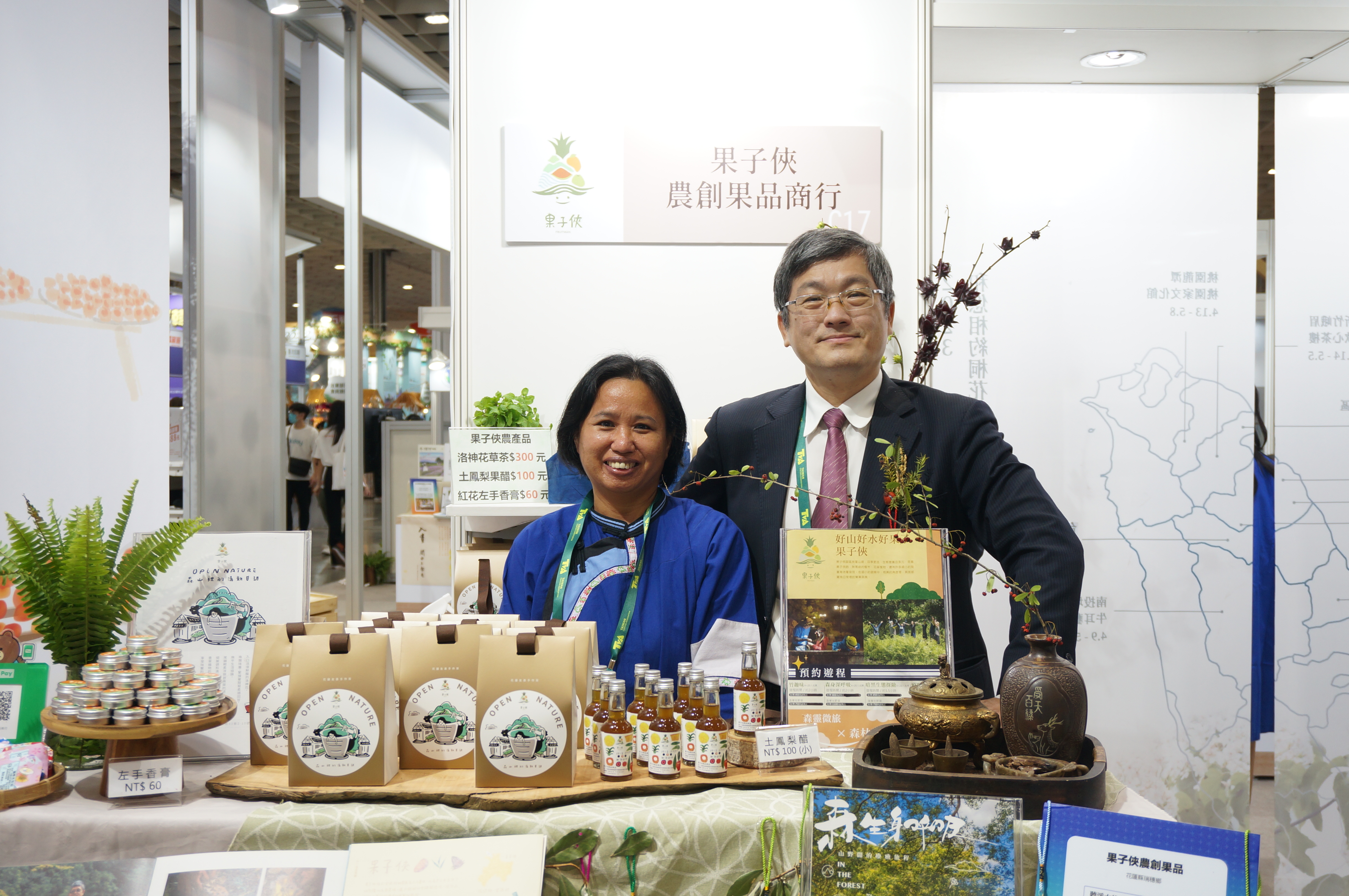 客家主題館除可品味客家好茶、地酒、咖啡與可可,另外也安排親近藍染、編織、手作紙等客家工藝體驗。此外,客委會與東南旅遊、雄獅旅遊、山富旅遊、康福旅遊、可樂旅遊、趣健行、丘山行旅行社、喬登旅行社、創新旅遊及易遊網等各大旅行社合作,不僅可在展期間消費選購,更打造線上客家旅展聯合銷售平臺,自11月1日起至明年3月31日止,透過「在客庄迷失方向」線上旅展活動網頁即可連結導購旅遊行程頁面,總計逾百條客庄旅遊產品可供選購。