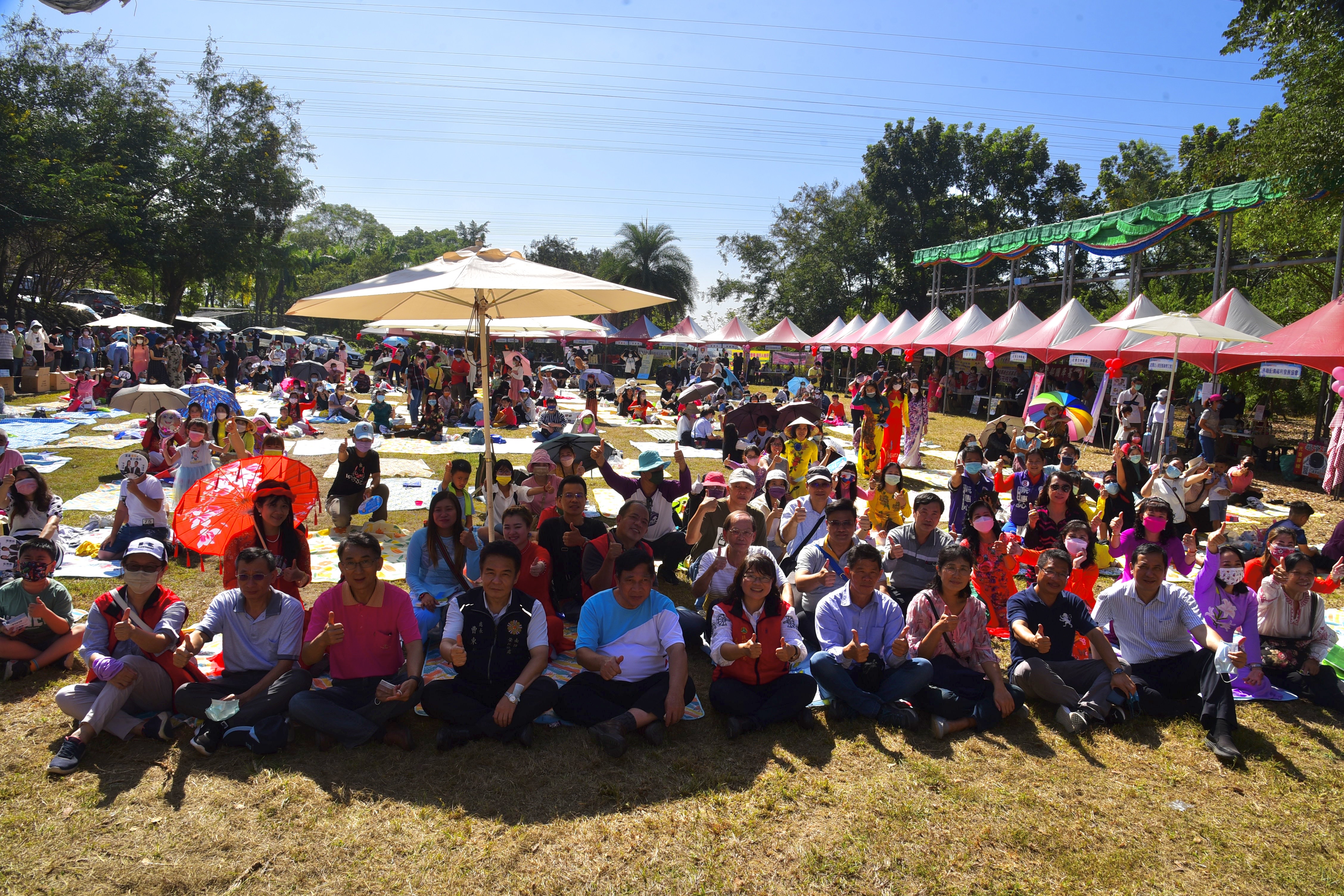「2022虎哩新幸福-熊愛南投新故鄉」移民節健行及多元文化慶祝活動13日上午在南投市中興新村虎山藝術館大舞台區熱鬧登場,來自全縣逾1500位新住民親眷到場健行野餐,副縣長陳正昇由民政處長吳燕玲陪同出席主持開幕儀式,並與新住民家庭同樂,移民署南投服務站主任蔡崇富、南投專勤隊長陳介章、南投縣榮民服務處長曹東發也到場致意,新住民們也穿著其原屬國服飾,讓活動更富異國風情,場面歡樂有趣。