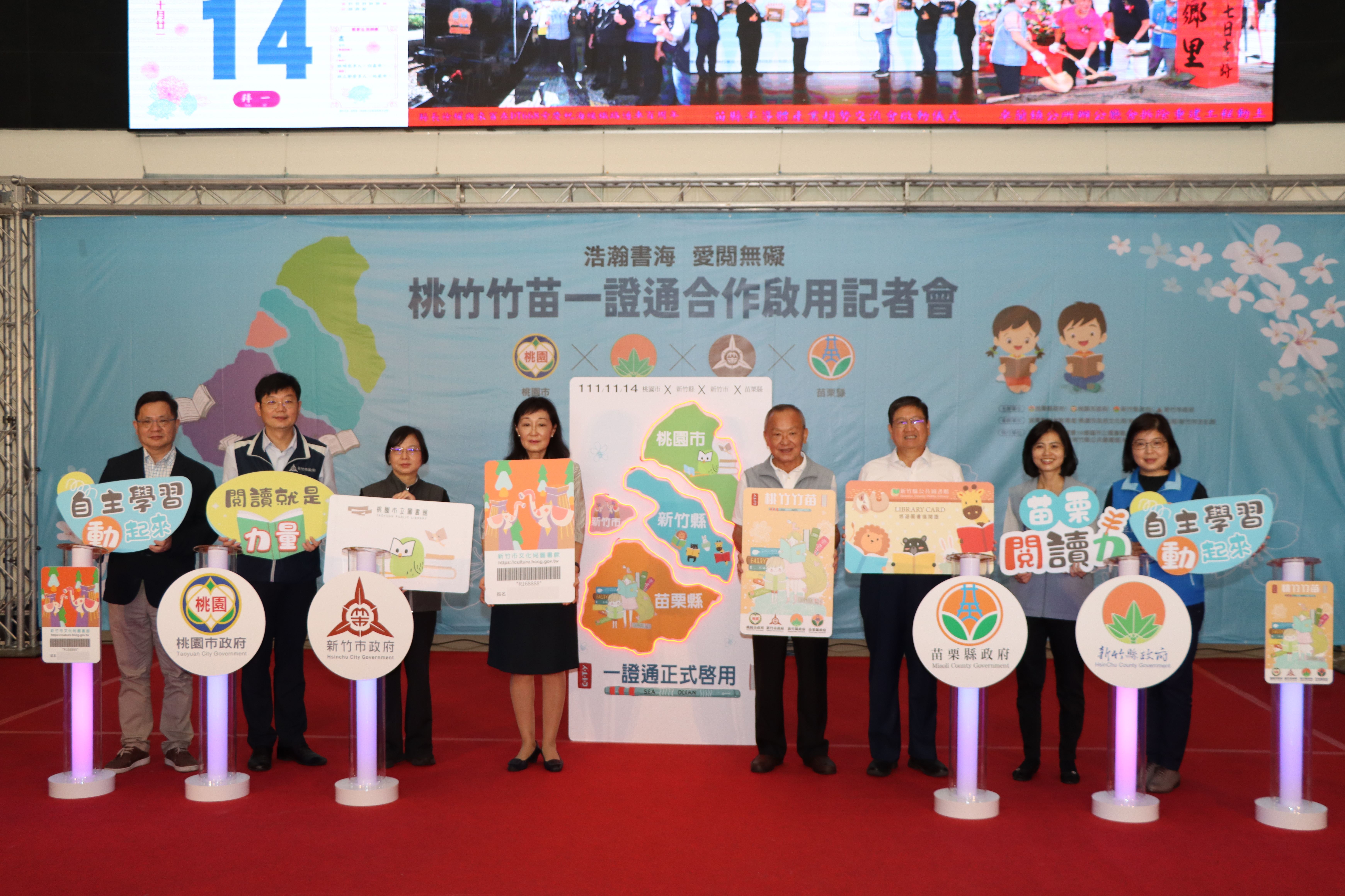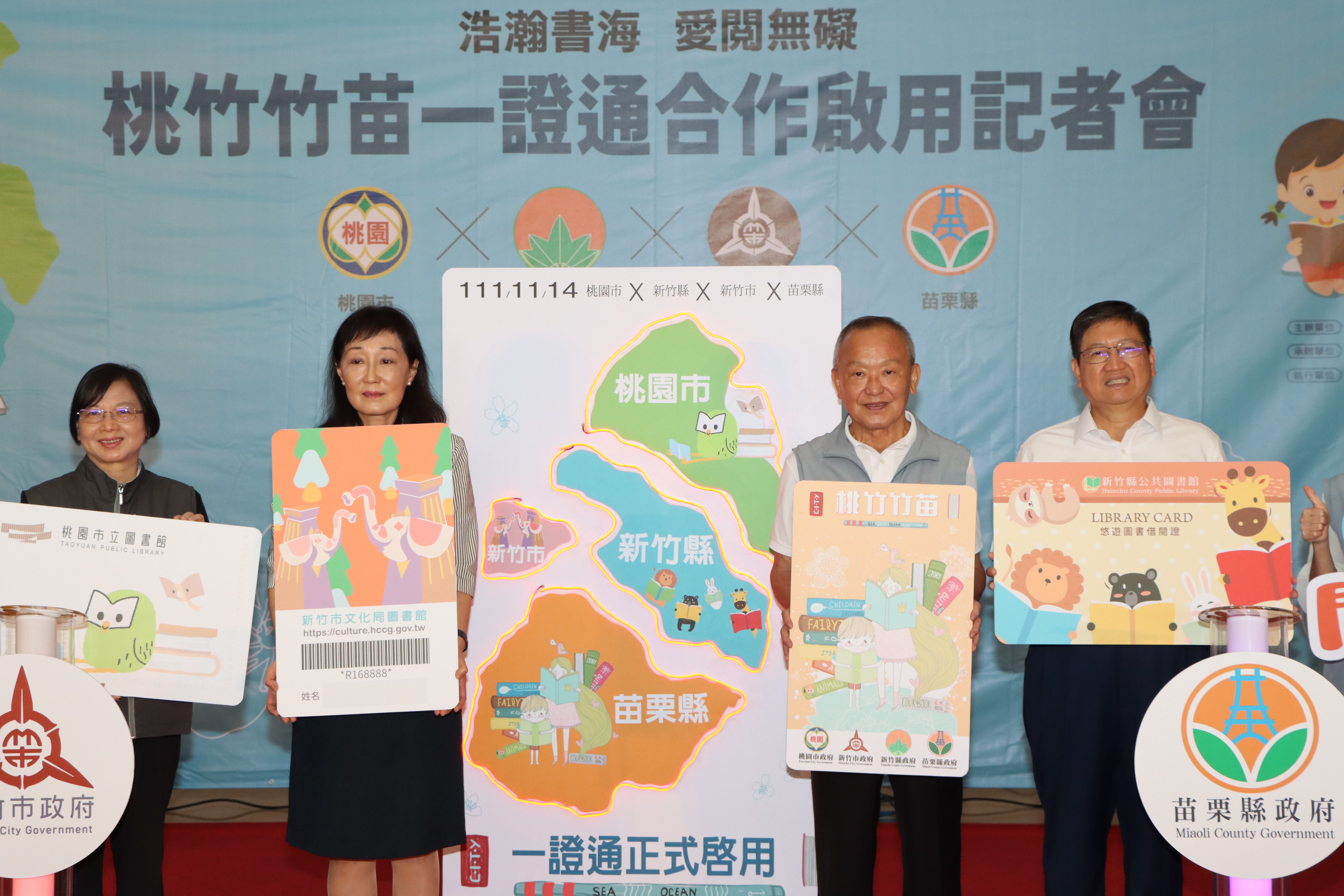 苗栗縣政府繼今年初與國立公共資訊圖書館合作加入「一證通整合平台」,再與桃園市、新竹縣及新竹市合作,推動「桃竹竹苗一證通」的服務,14日苗栗縣長徐耀昌、新竹縣長楊文科、新竹市副市長李世珍、桃園市政府文化局長莊秀美共同啟動一證通服務,讓民眾跨縣市借閱書籍之無地域時間限制的便利,共享閱讀的美好。