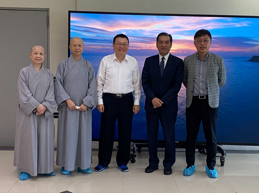 接著移駕至四樓雲端教室,展示該中心初步建置之官方網站,並由本校視覺傳達設計學系吳敬堯主任,現場展示他率領團隊製作的「臺灣寺院巡禮―中華佛寺協會」虛擬實境範例。這將是該中心推廣項目「臺灣佛教地圖與虛擬實境」的第一個成果,非常值得期待。