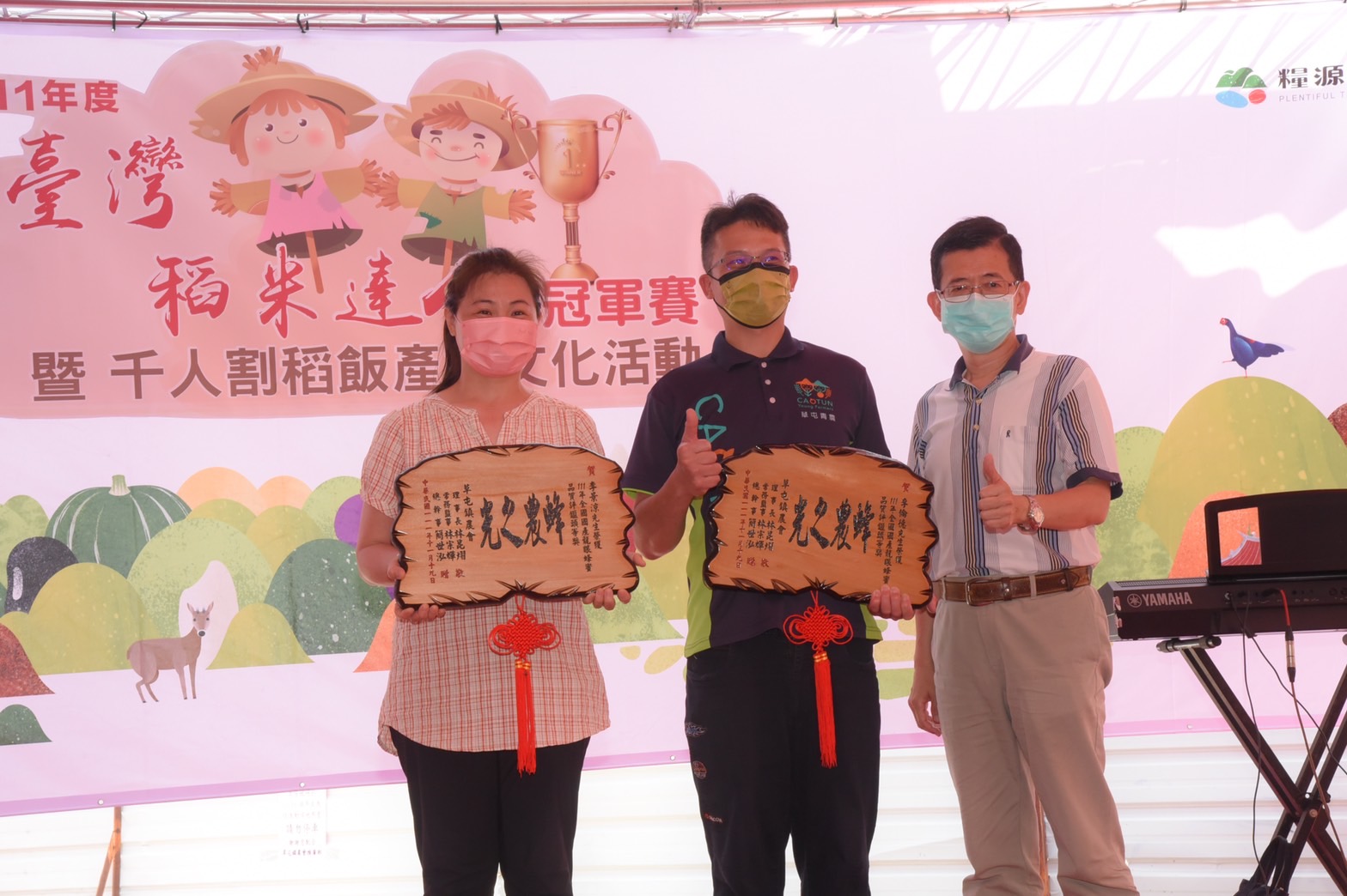 草屯鎮農會理事長林昆熠表示,草屯鎮農會利用此次臺灣稻米達人頒獎活動辦理理千人割稻飯米食嘉年華活動,讓昔日農村「放伴」人力互相支援的「割稻飯」農務傳統得以原貌重現。