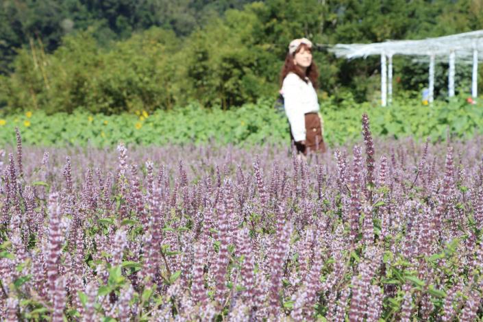 副縣長鄧桂菊表示,獅潭鄉公所和農會去年首度推出仙草花節,吸引許多人潮,回響熱烈,所以今年再度辦理仙草花節活動。今天我們在現場可以看到一大片紫色的仙草花海,栽培的仙草品種是花期較晚的桃園2號,預計花期可以持續到12月上旬;花田有6座在地青年創作的裝置藝術,歡迎大家來盡情拍美照!