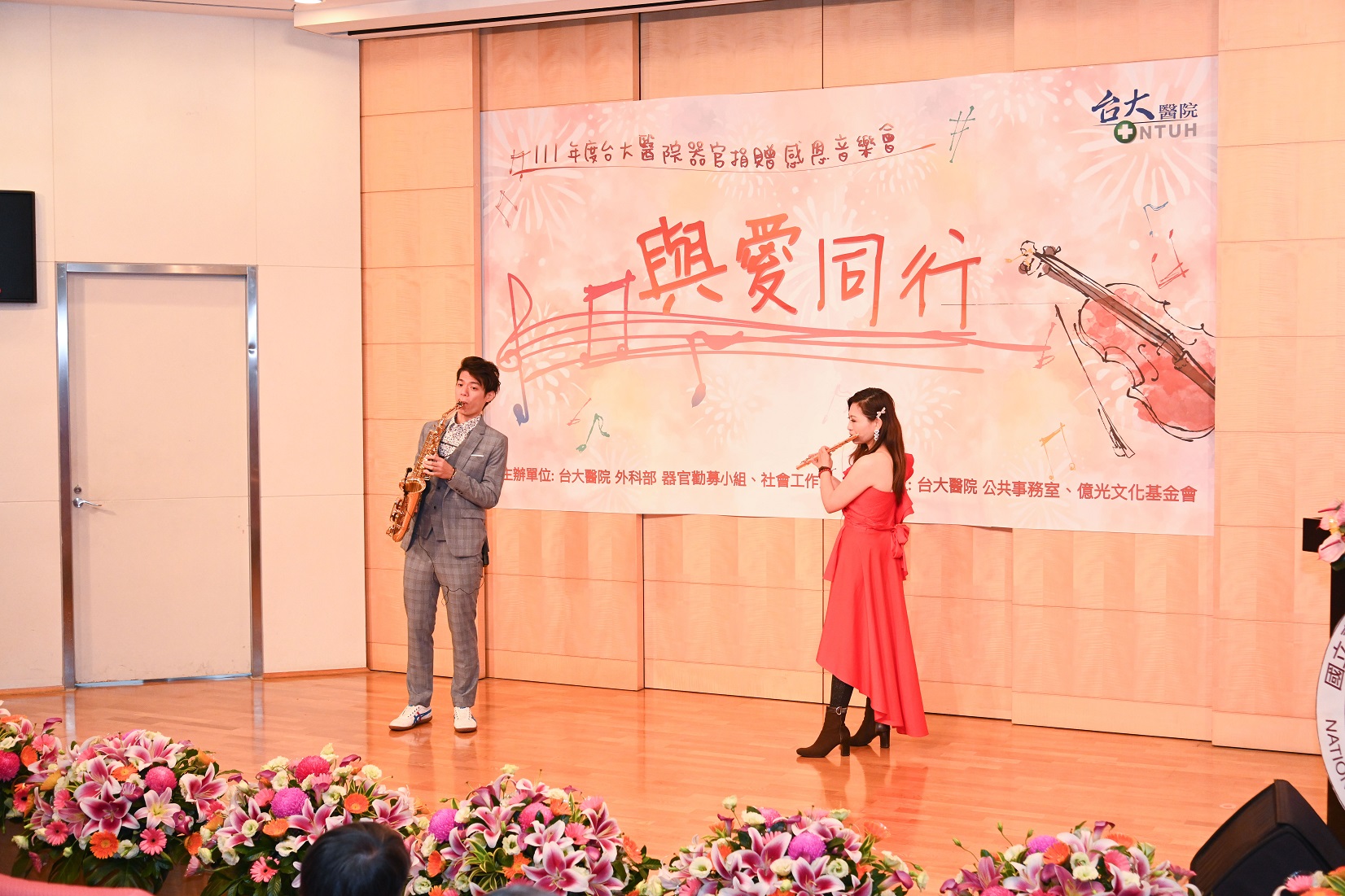 感謝器官捐贈者大愛 臺大醫院舉辦愛同行感恩音樂會-孫維廷老師及華姵老師演奏薩克斯風與長笛. 圖/臺大醫院提供