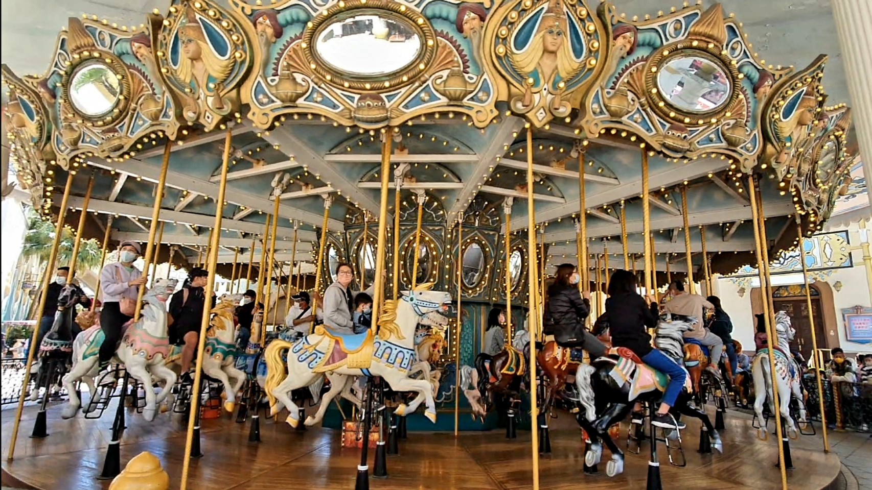 園區內最受情侶歡迎的3大遊樂設施,首選溫馨浪漫的「旋轉木馬」。圖 六福村提供.