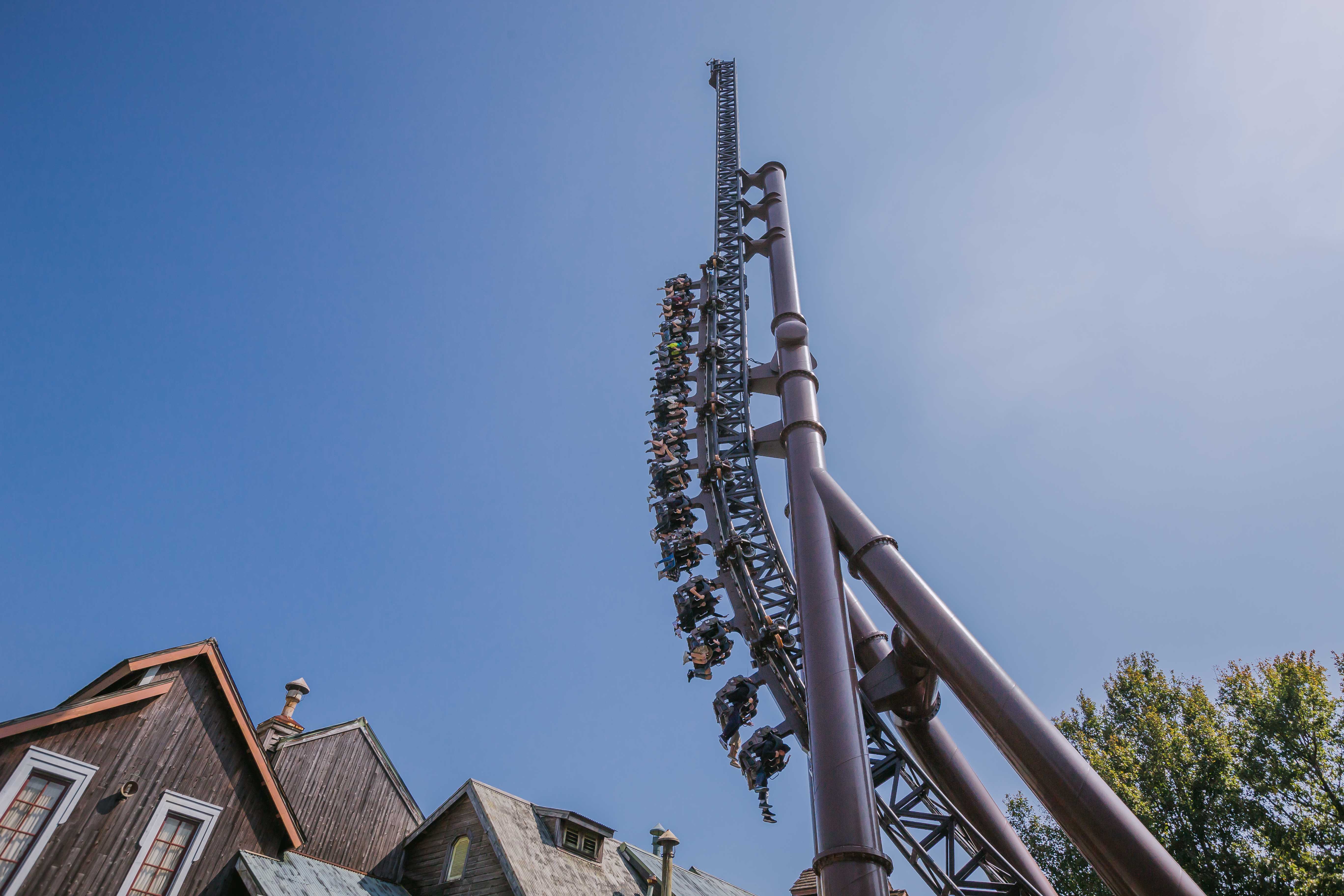 最高時速達122公里,360度螺旋沖天的「笑傲飛鷹」是到六福村必玩經典設施。圖 六福村提供
