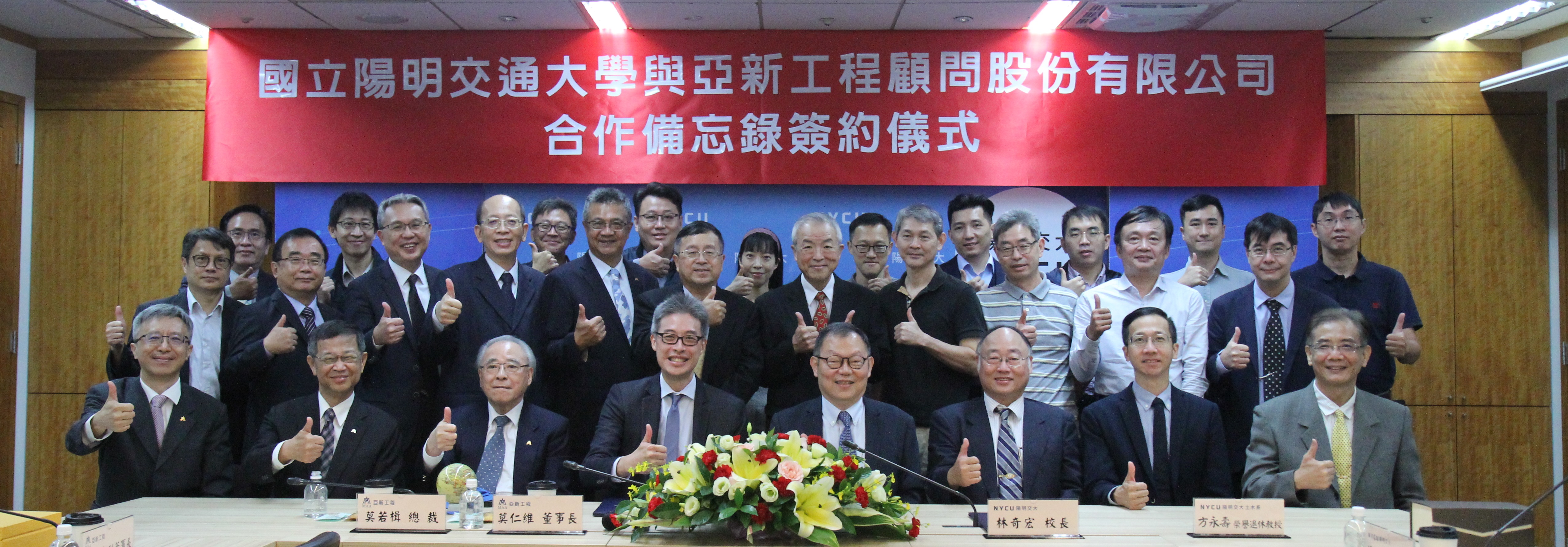 國立陽明交通大學與亞新工程顧問股份有限公司於22日由陽明交大校長林奇宏及亞新工程顧問公司董事長莫仁維代表簽署「產學合作備忘錄」,奠定雙方產學合作並宣示為國家未來及基礎建設貢獻,共同培育優秀建設人才,並推動優質的公共工程。