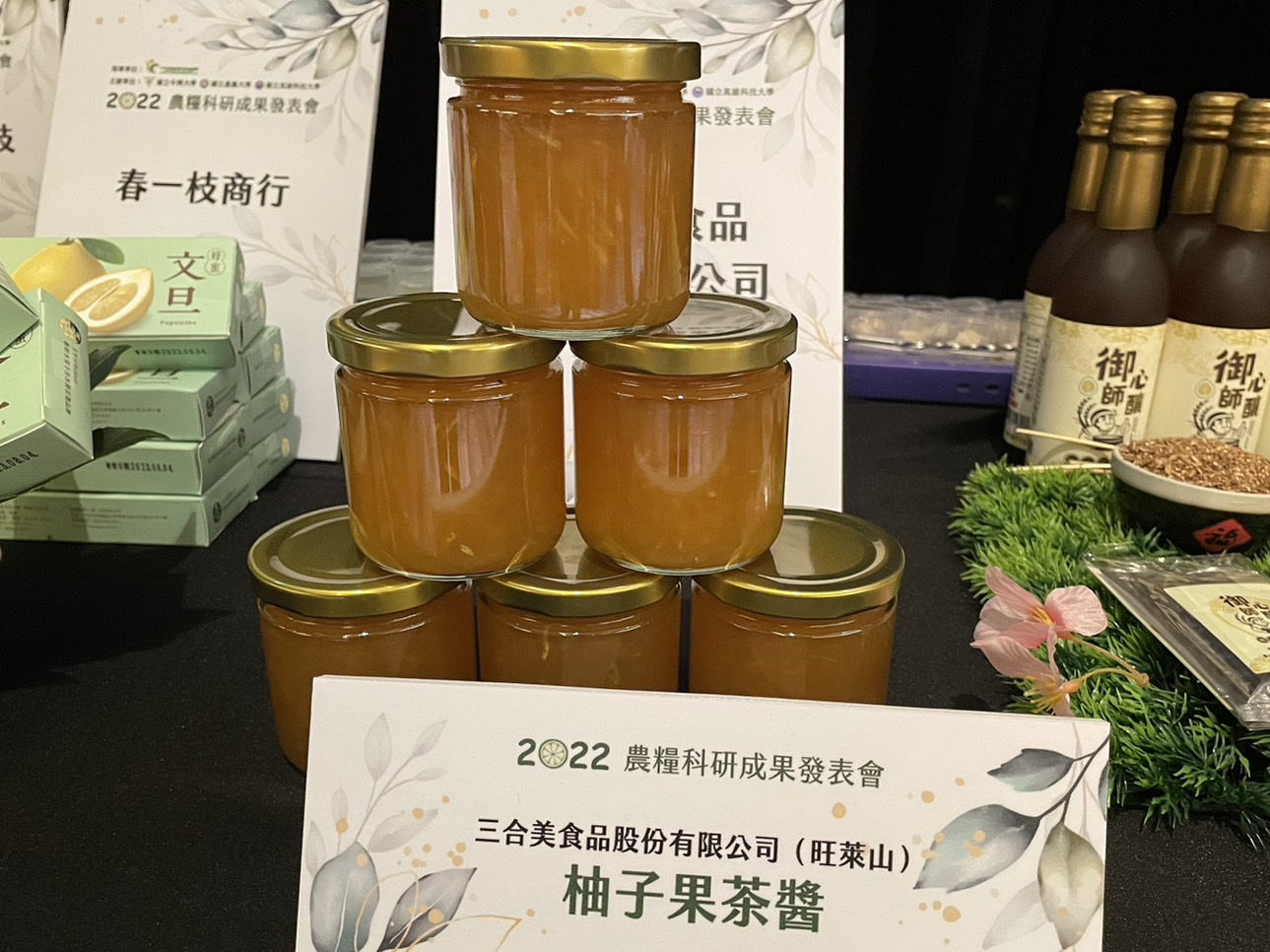 行政院農業委員會多年來推動農產加值不遺餘力,研發各項劃時代技術,創造出大量深具商業價值的農產加工品。其中嘉義大學食品科學系張文昌助理教授研發「柚子果茶醬」,11月23日在臺北喜來登飯店舉辦2022農糧科研成果發表會時亮相,是第一瓶以「微電腦電動水果削皮機」取肉所製造的臺灣本土柚子果茶醬,以獨特的食品加工技術處理,有效保留柚子香味,並減少苦味發生,展現國產文旦柚價值。除了創新技術,更進行市場調查,瞭解消費者需求,迎合現代人喜歡嚐鮮的心態與新時代的需求,將傳統農作物注入全新的靈魂,未來可將技術轉移民間,全力媒合經銷通路,達到產、官、學、銷一條龍的效果,為農業提升最大利益。