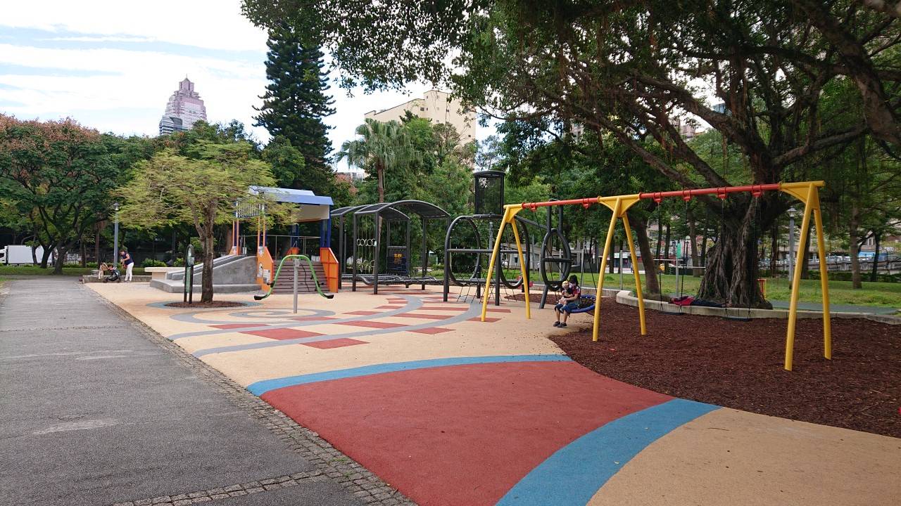 玉泉公園鄰近國定古蹟臺北府城暨總督府交通局鐵道部保存計畫範圍,兒童遊戲場規劃意向結合在地紋理歷史背景特色,以鐵道部建築外觀、火車、鐵軌等關聯性外型打造具地方意識連結之「火車嘟嘟主題性遊戲場」。