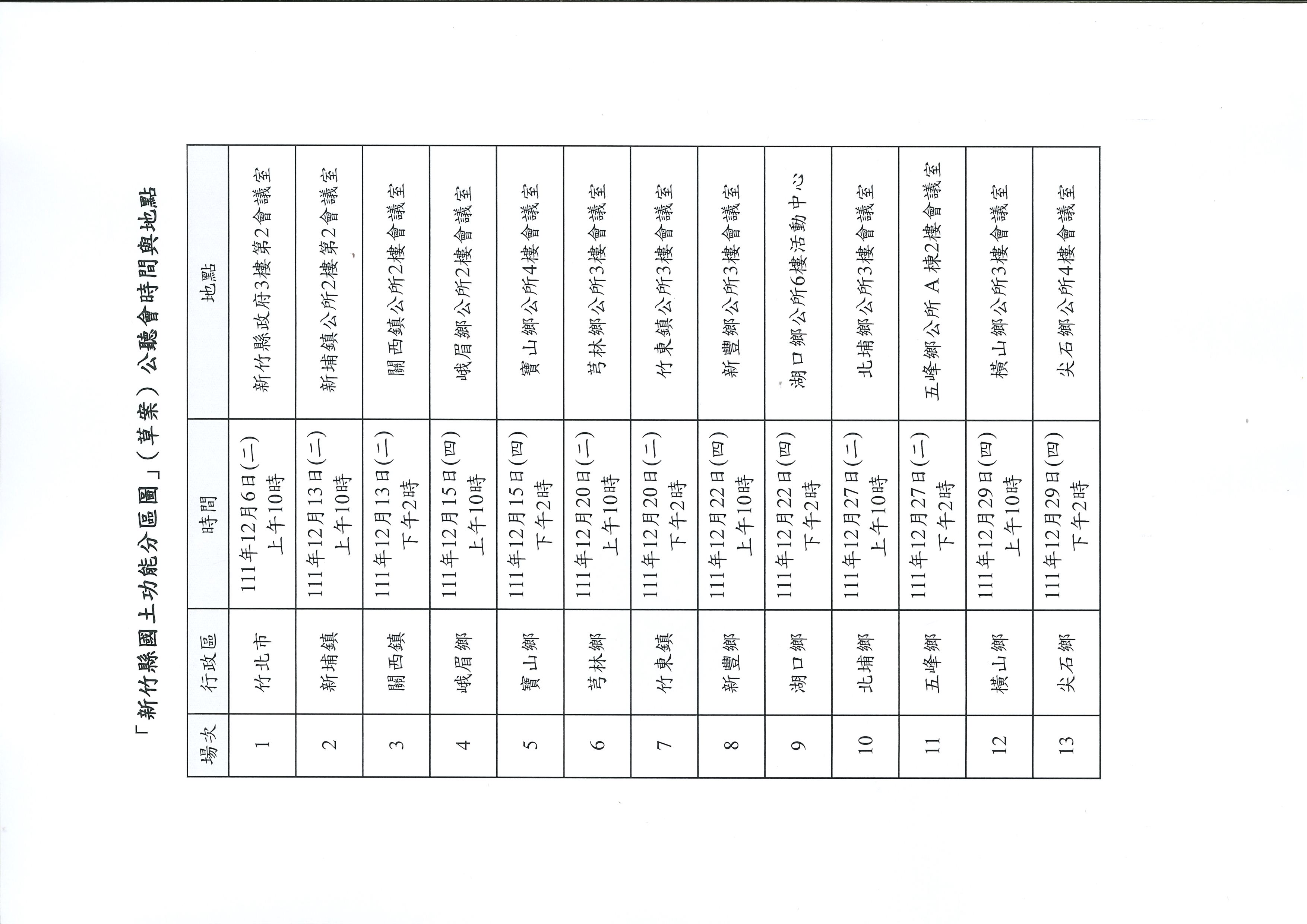 公聽會時間、地點 資料來源:新竹縣府地政處 提供