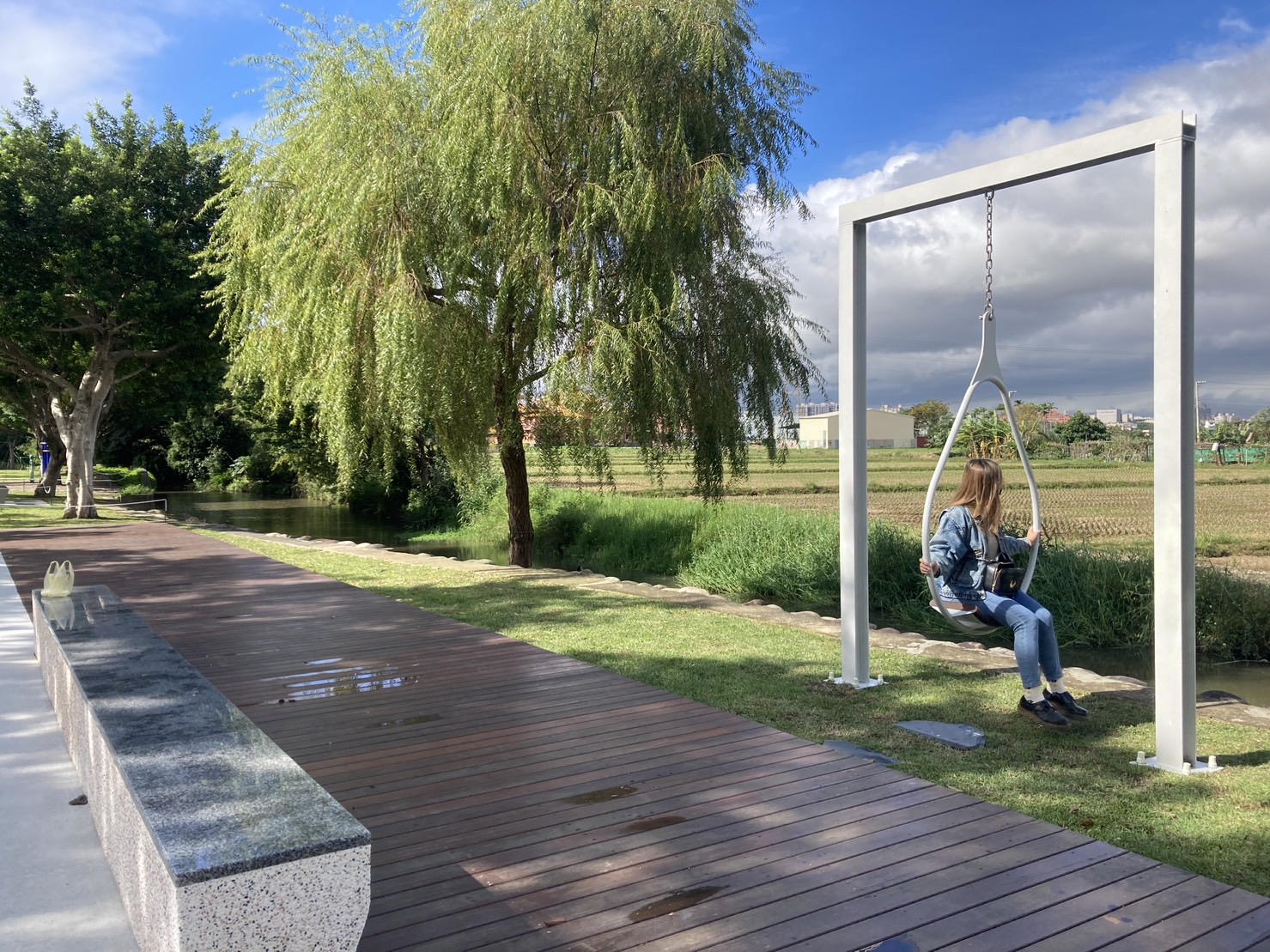 工務局副局長潘子儀說明,溪濱公園工程項目包括廣場主入口意象、廣場節點重建、全區自行車道設置、動線及節點路型優化、畔稻圓打卡點、綠野鞦韆、觀景木平台、健康休息站、全區地圖導覽牌及標誌等。此外,由於公園內喬木生長狀況優良,並可提供優質遮陰空間,因此全區也保留近500棵現地原生喬木,並新設四季景觀植栽,相信未來完工後將成為親子遊樂及運動休憩的優良場所。