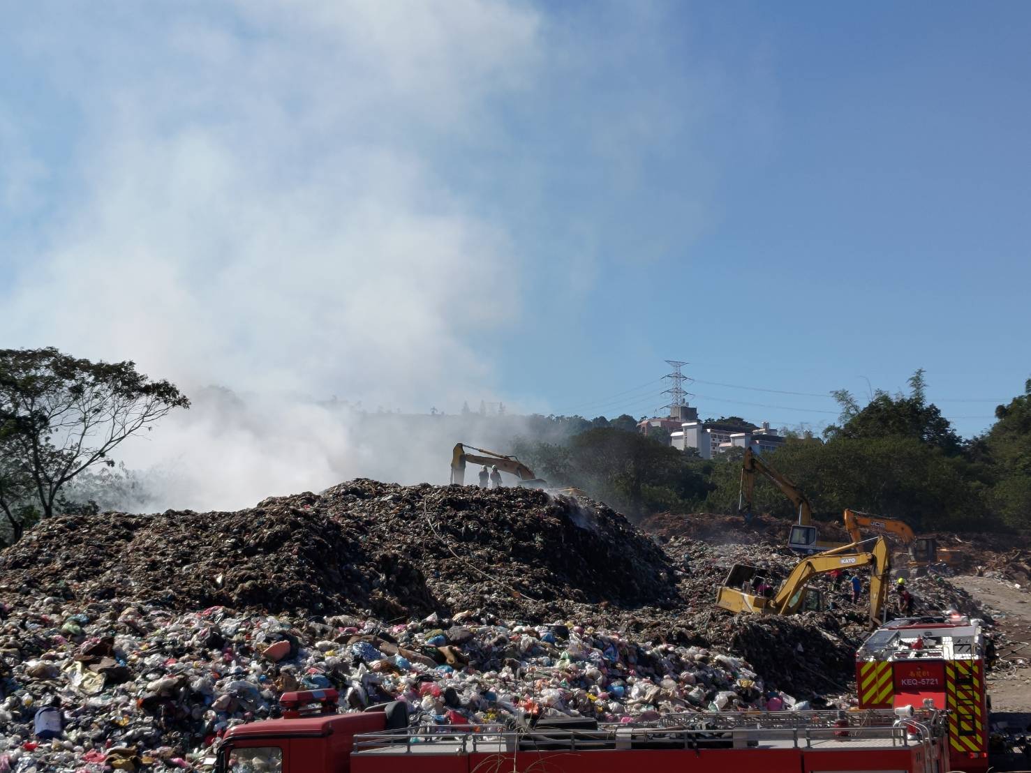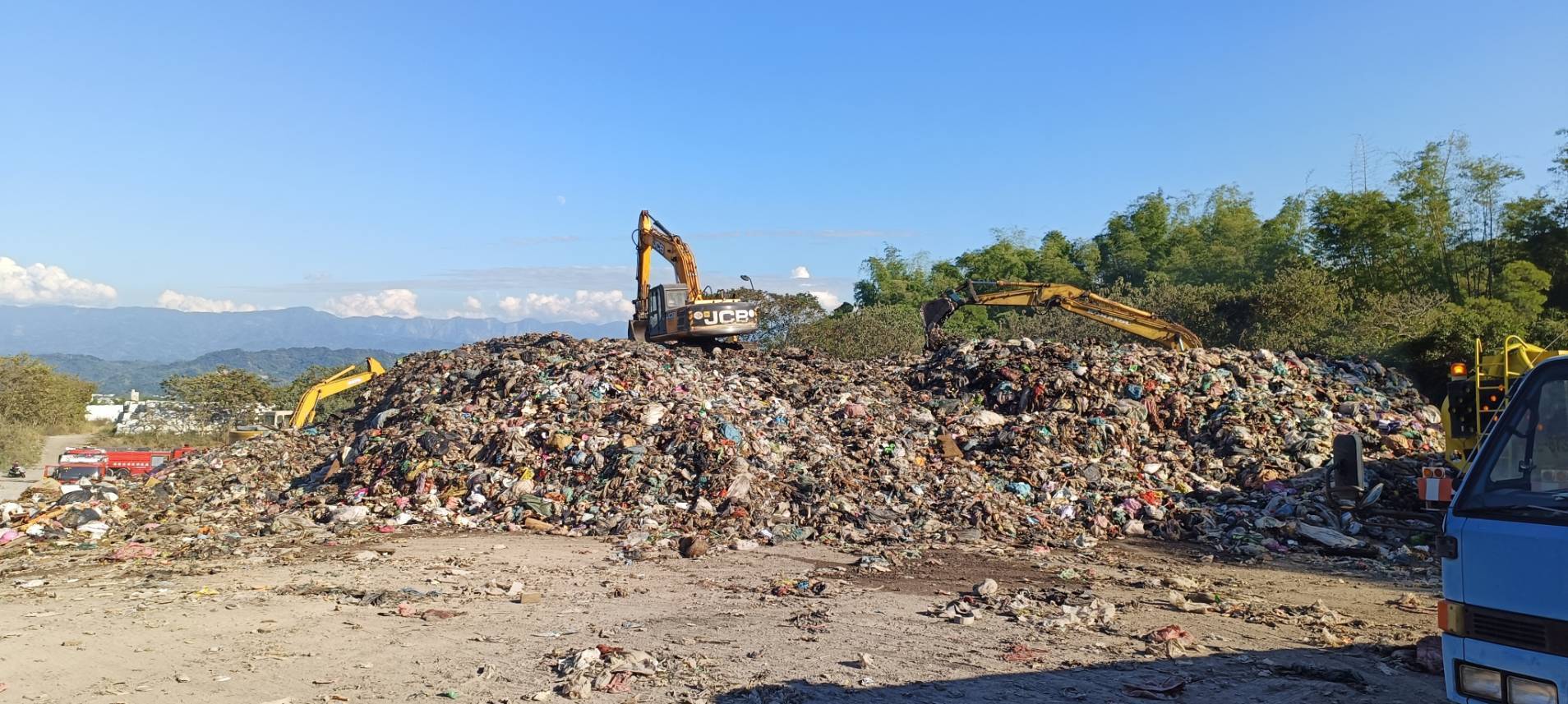 今早5點左右,南投市清潔隊垃圾暫置場發生火警,消防局經通報後立即到達現場後開始滅火,清潔隊同仁接獲通知後陸續到場支援,清潔隊以挖土機開挖防火線,並配合消防局灑水降溫,初步控制燃燒面積在500平方公尺,初步起火原因疑似垃圾堆積產生自燃,實際原因待消防局鑑識判斷。