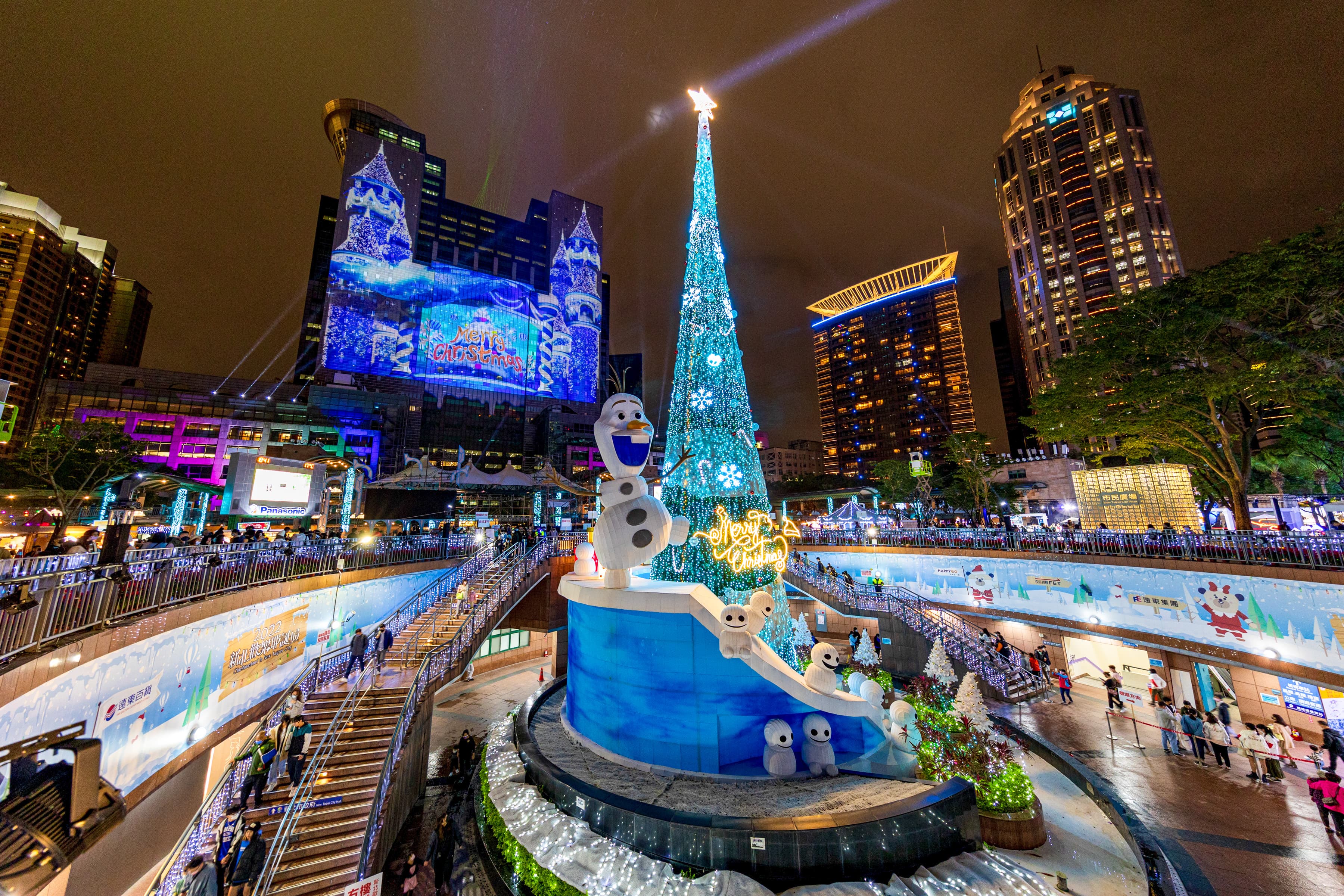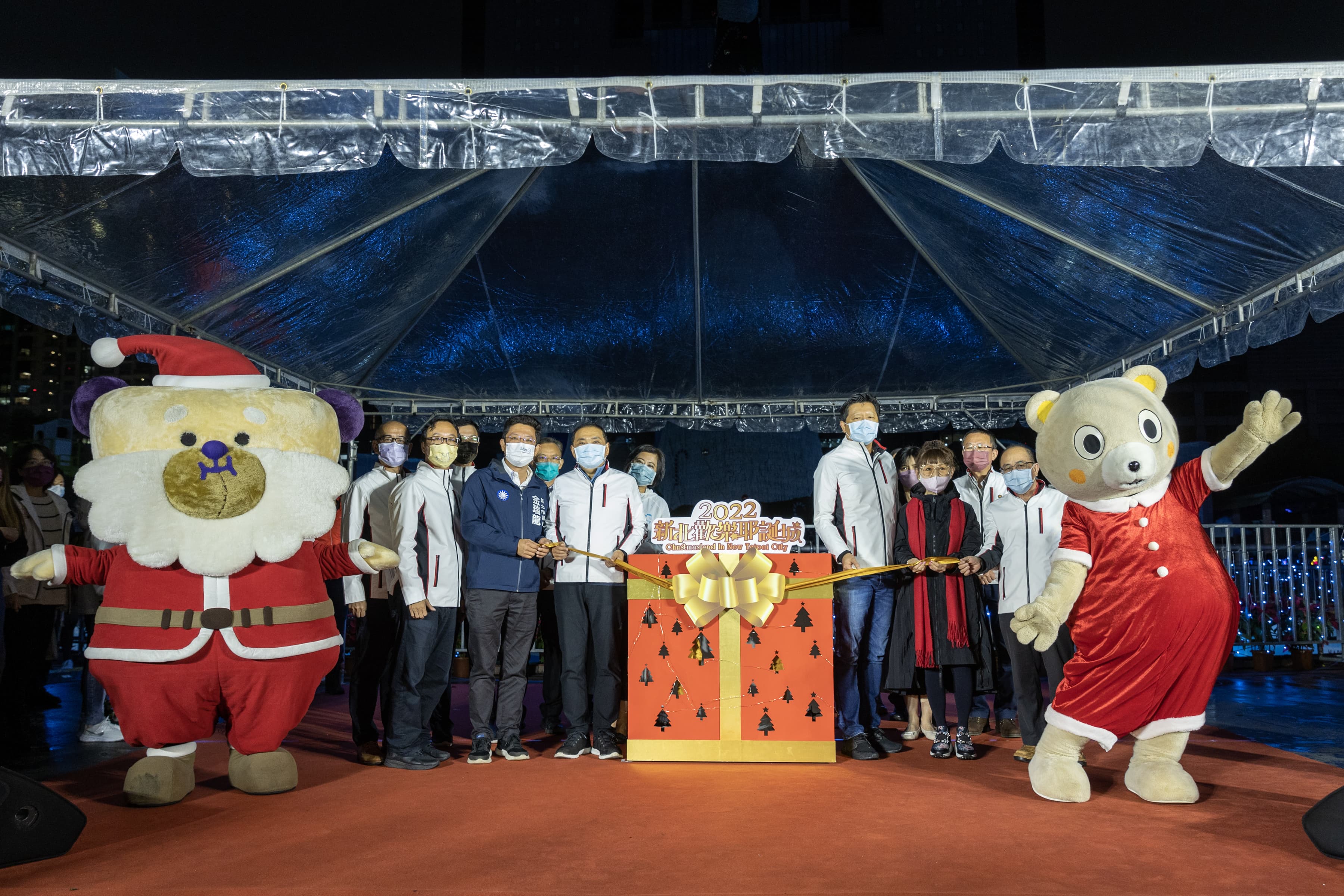 「2022新北歡樂耶誕城」第二支3D光雕雷射主燈秀於12月5日換新裝,由新北市市長侯友宜主持主燈新秀儀式,隆重推出「Imaginary無限篇」3D光雕投影秀,巧妙運用光影變化,把新北市府大樓「重新解構」,結合炫彩雷射、大樓極光效果及浪漫飄雪,為在場所有民眾帶來繽紛絢爛的驚奇時刻!