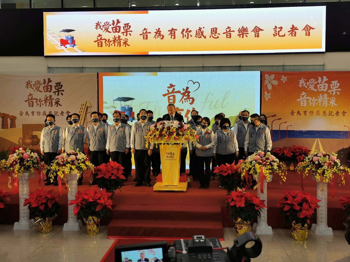 苗栗縣政府於12月16日在縣府廣場前盛大舉辦「音為有你感恩音樂會」活動,現場由苗栗縣大家長徐耀昌縣長為活動揭開序幕。本次音樂會特邀請《黃明志》、《玖壹壹》、《翁立友》、《郭靜》與《黃妃》等人氣歌手輪番獻唱