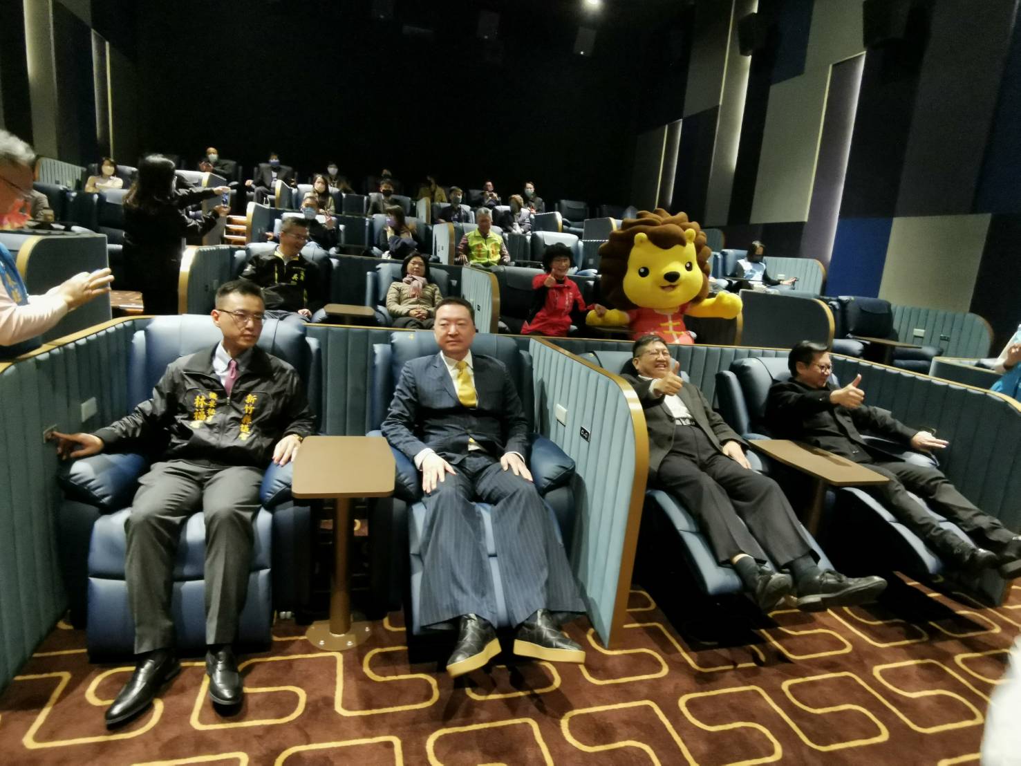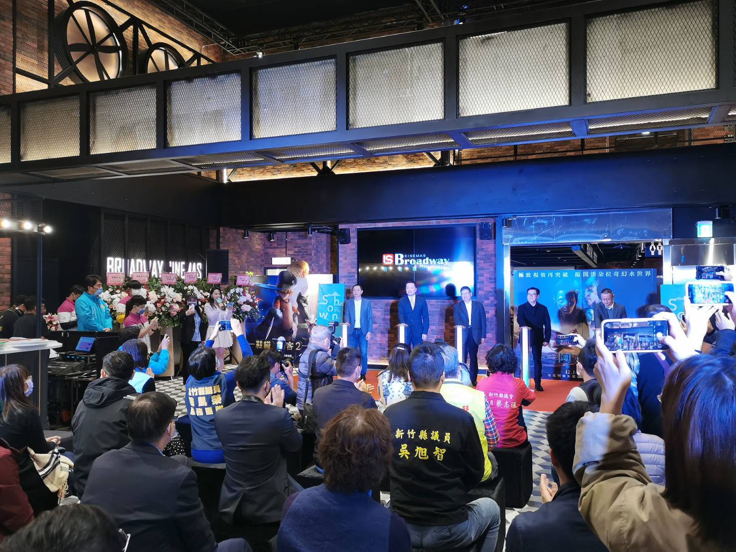 新竹縣第一間五星級影城及商場於12月14日正式開幕營運,楊縣長、享平方商場魏董事長、龍祥百老匯影城王董事長一同進行啟動儀式及特色影廳開箱,點亮新竹科技城的娛樂新天地。