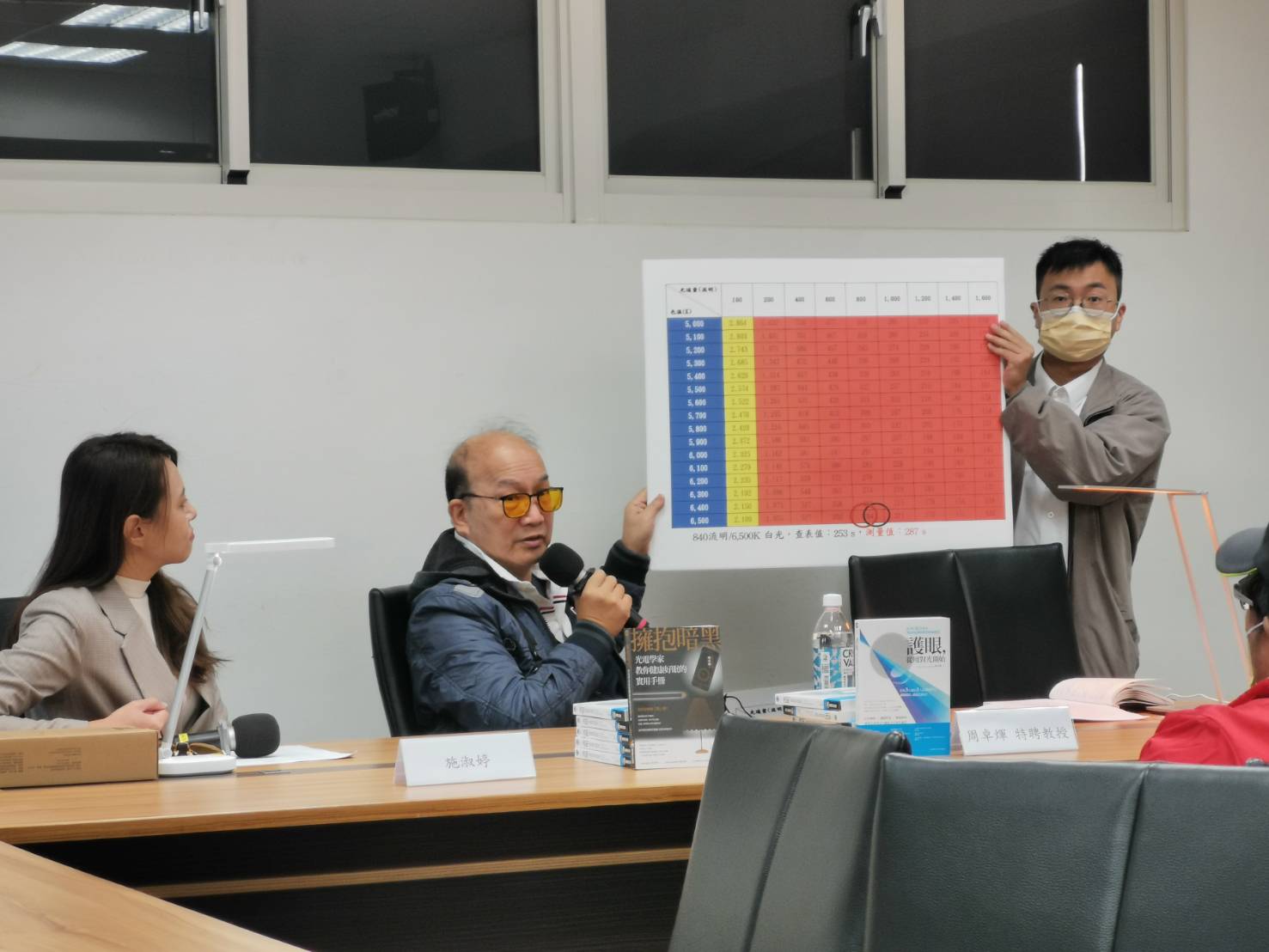 圖二、清大周教授說明如何透過查表,快速知道檯燈可閱讀時間。 圖/雲視界記者魏雲日攝影