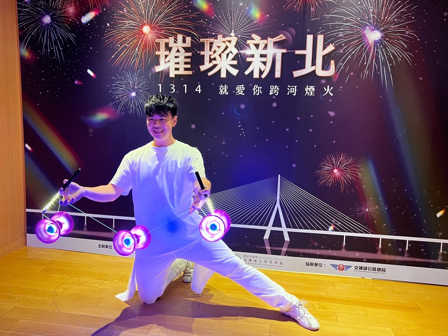 新北市副市長陳純敬表示,新北跨河煙火選在淡江大橋施放,並以友善、親子為目標,下午開始在河岸舉辦活動與演出,煙火20:23開始施放,讓大家可以從白天逛到晚上,爸媽也可以帶著孩子,一起同遊賞煙火。未來淡江大橋完工後,會讓這裡的交通更完善,並成為新北的重要地標,結合煙火跟漂亮的河景夜空,一定會更熱鬧、盛大,精采程度絕對媲美國際。