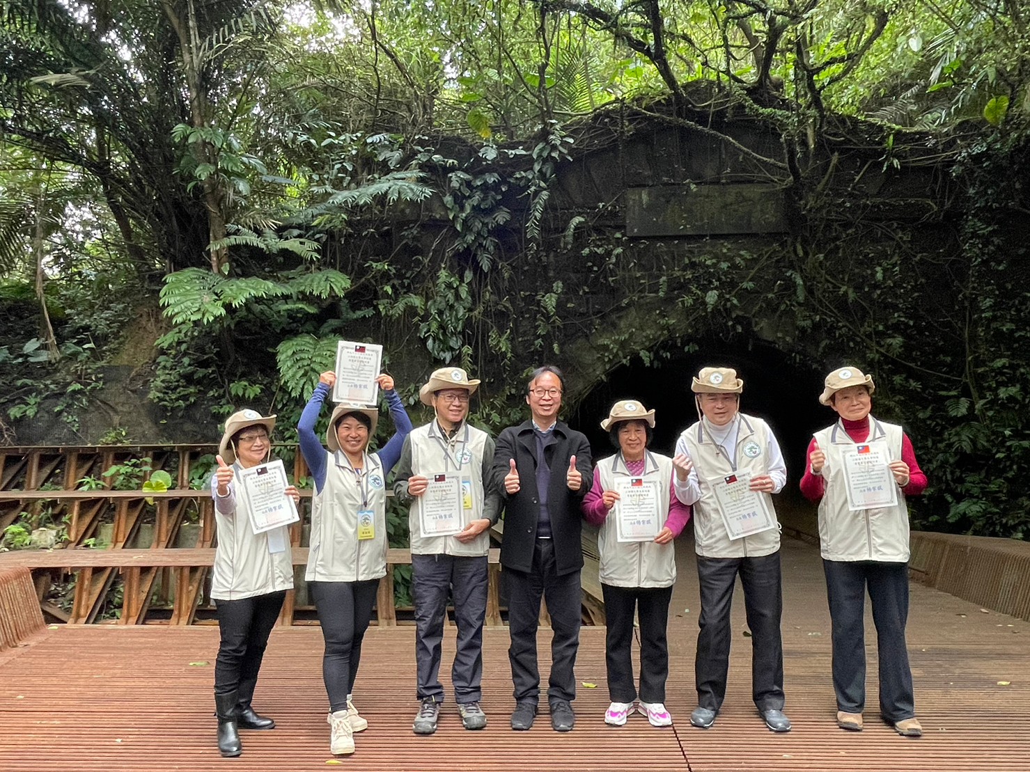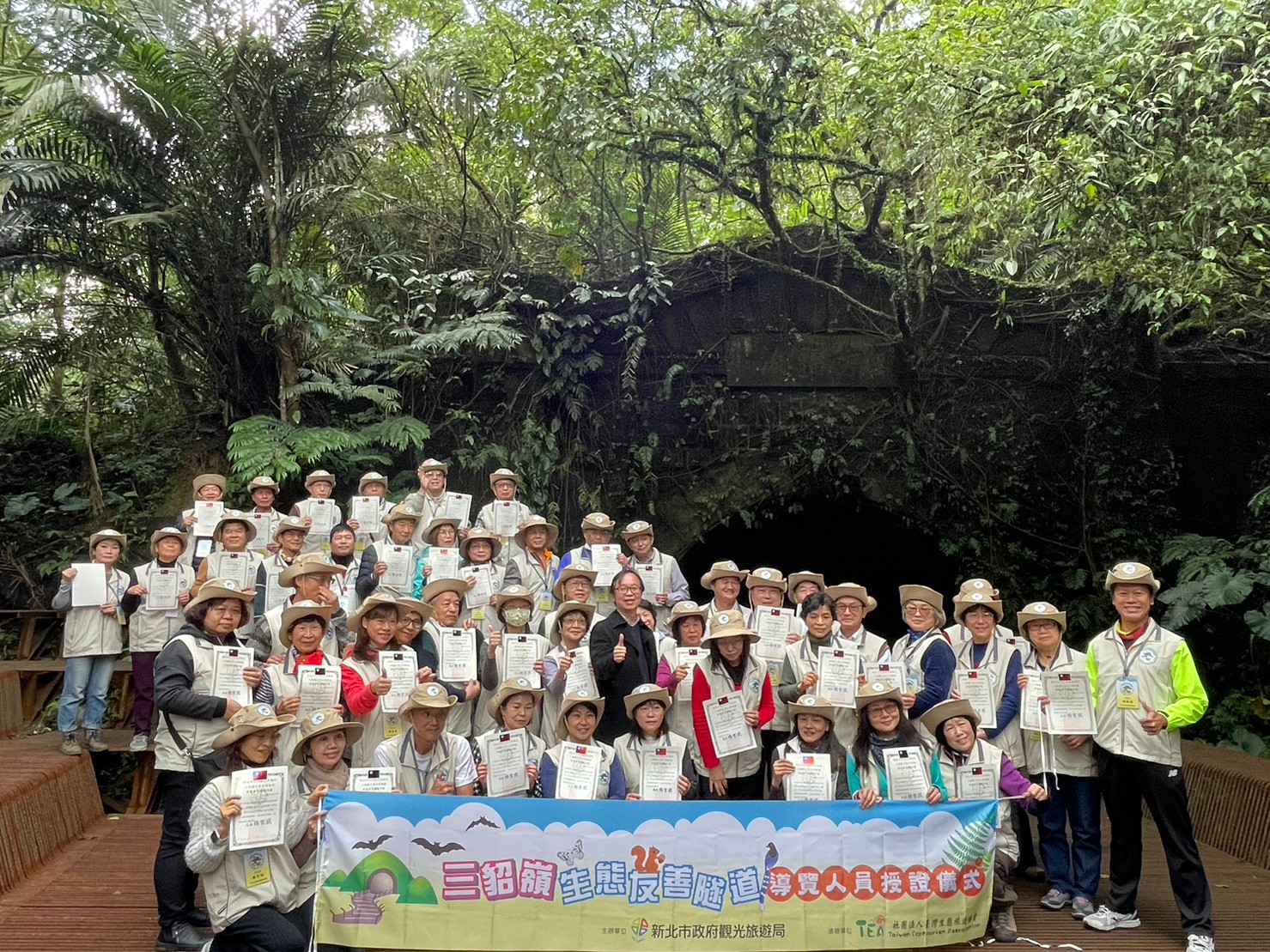 新北市政府觀光旅遊局今(19)日於三貂嶺生態友善隧道舉辦「三貂嶺生態友善隧道導覽人員培訓」授證儀式,由新北市政府觀光旅遊局楊宗珉局長進行授證,並給予完訓合格的在地學員們肯定與鼓勵。