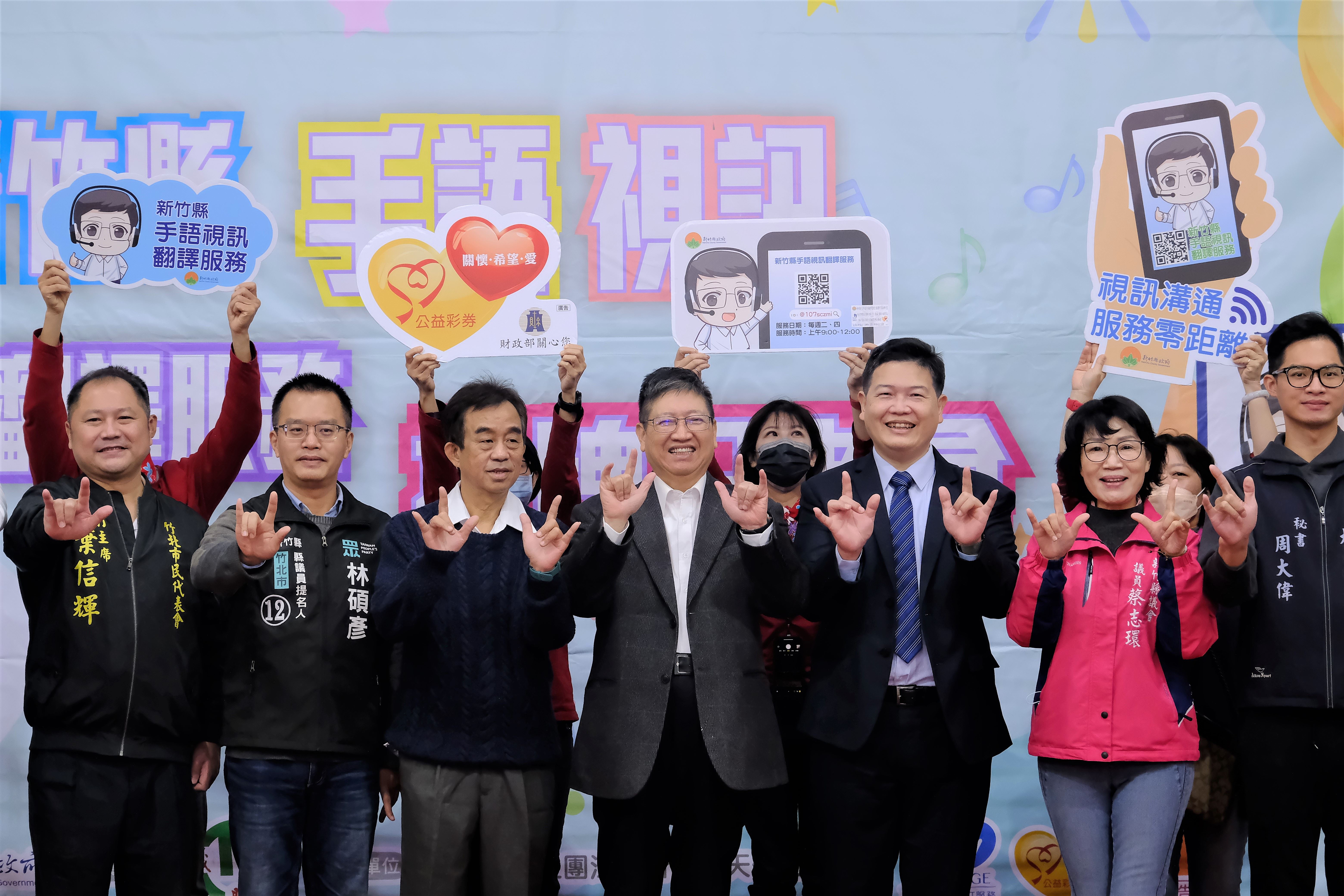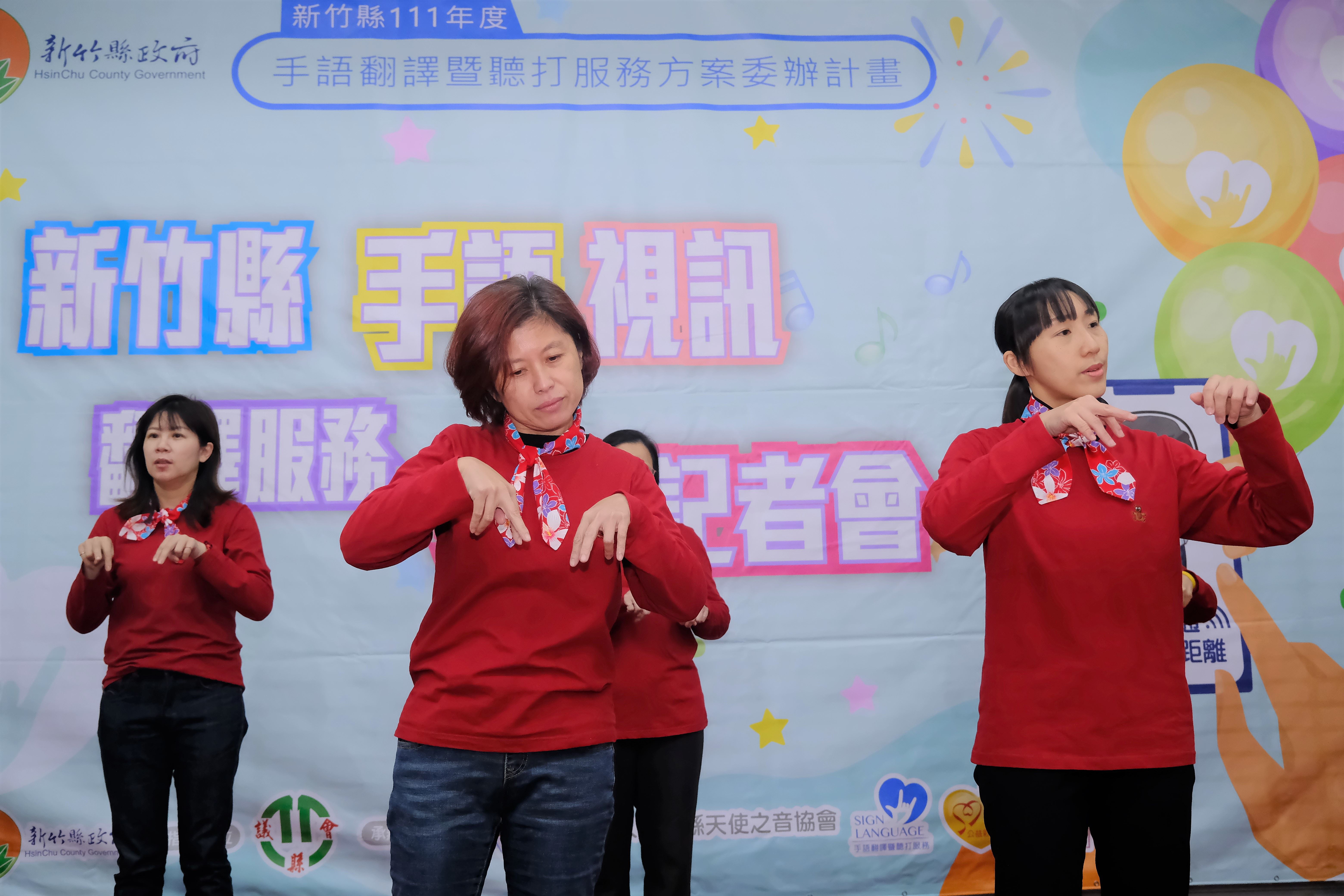 新竹縣政府12月19日舉辦記者會,新竹縣長楊文科偕新竹縣天使之音協會理事長林基順、多位民代等,共同為手語視訊翻譯服務專區揭牌,並由天使之音協會帶來精彩手語歌表演,並安排即時聽打服務,讓在場的聽、語障礙朋友快速理解服務內容。