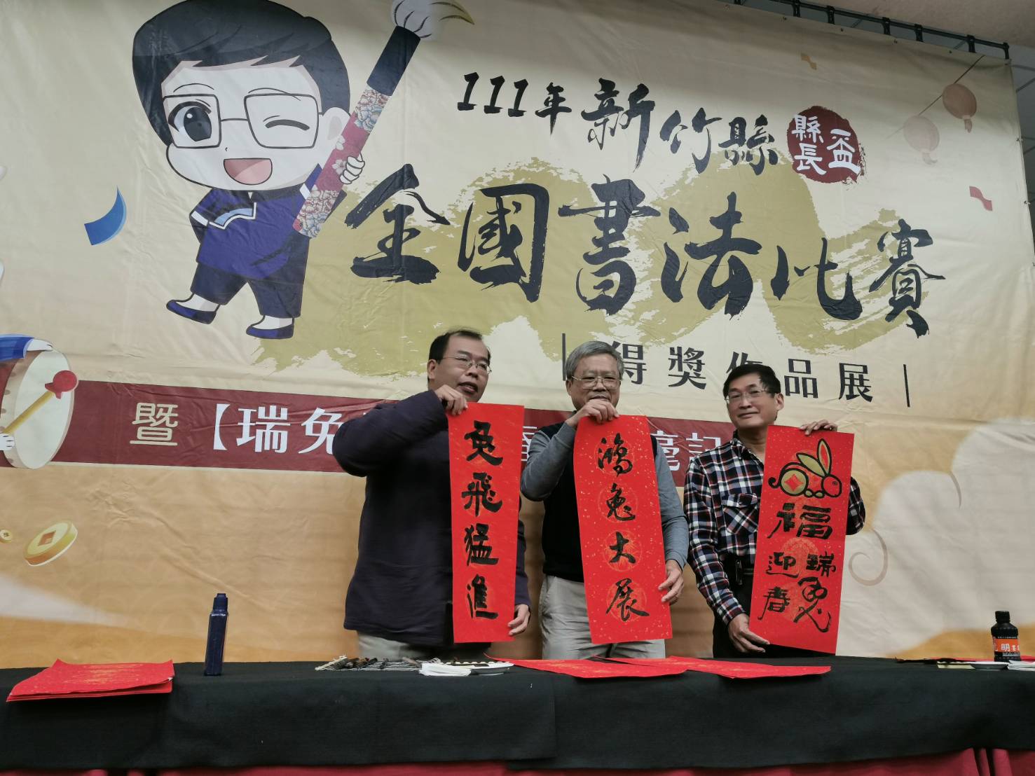 同時,新竹縣政府文化局也為即將到來的農曆春節辦理「瑞兔迎春-春聯揮毫贈送活動」,時間訂於112年1月7日(六)上午十時於文化局美術館舉行,此次活動特別邀請本縣書法及版畫老師與縣長盃比賽首獎得主齊聚一堂,現場書寫春聯並贈送鄉親,增添年節喜氣。