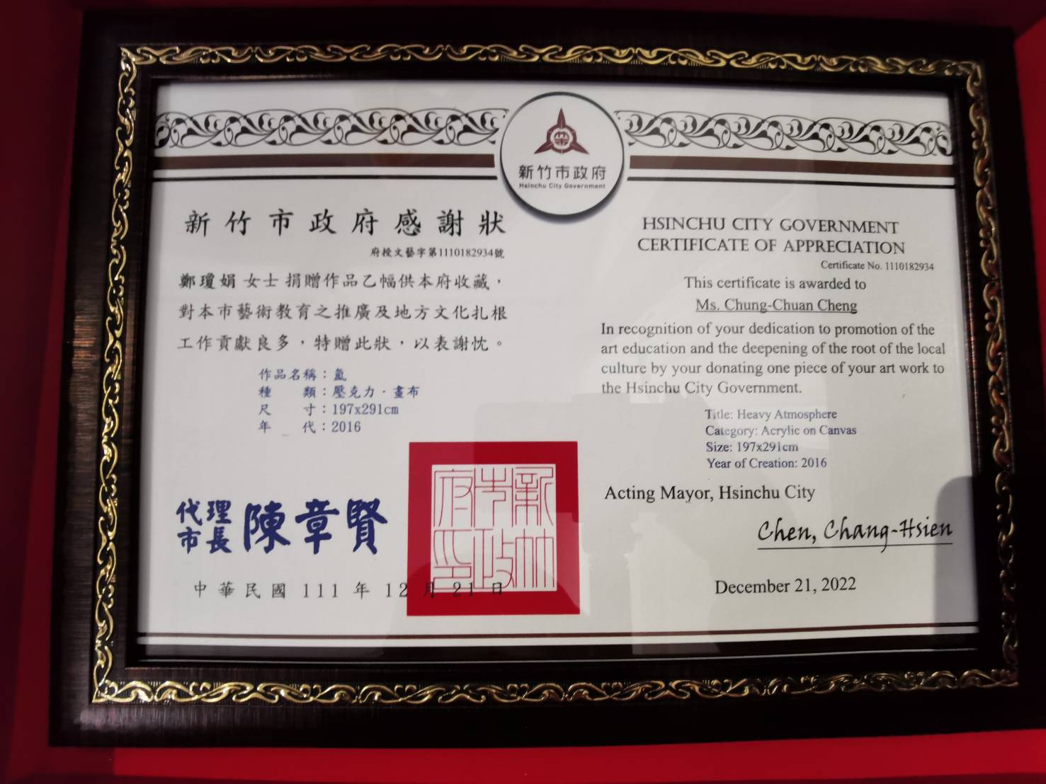 「感謝鄭老師肯定市府的努力,慨然允諾捐贈畫作!」