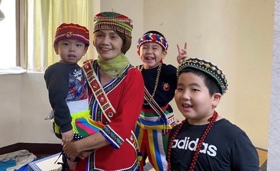 ▲新北獲獎族語保母陳菊江(左二)及幼兒陳翰(左三)。(圖/新北市政府原民局提供)