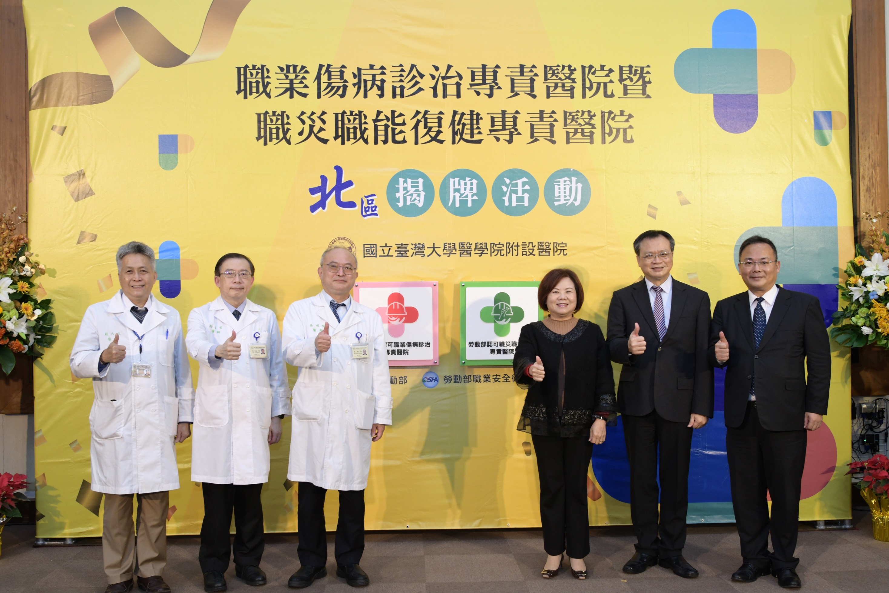 臺大醫院今年通過認可成為職業傷病診治專責醫院暨職災職能復健專業機構,並成立院層級職業傷病醫療委員會,為來診之受災勞工提供診治、醫療、復健、工作能力評估、復工計畫及補助諮詢等連續性服務,使受災勞工獲得應有的協助,儘早回復職場,12月22日勞動部長許銘春、職安署署長鄒子廉與臺大醫院院長吳明賢、副院長高嘉宏等共同為職業傷病診治暨職災職能復健專責醫院揭牌。