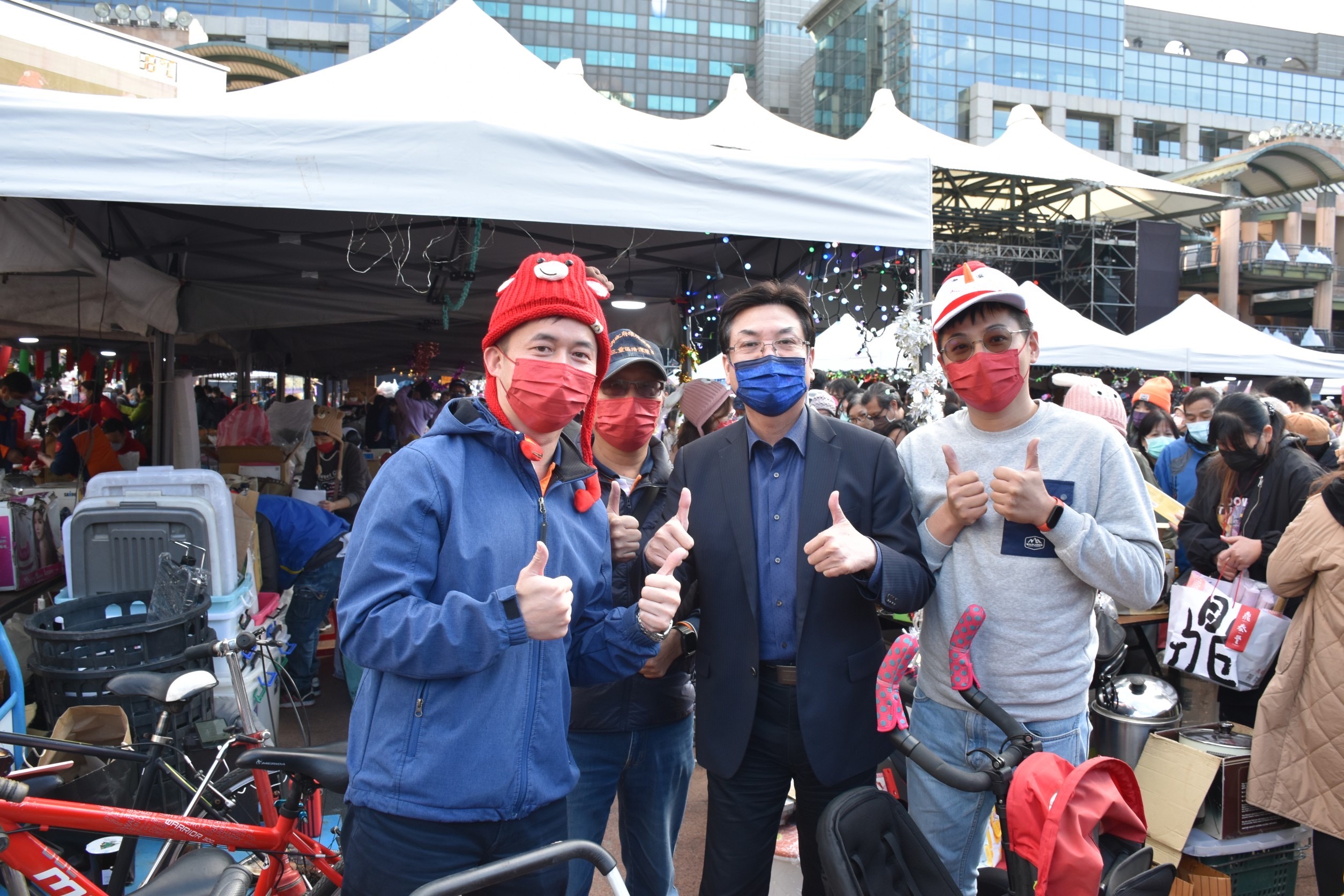 新北市副市長劉和然今日也特別到現場,劉副市長表示,新北市已連續8年辦理「耶誕環保挖寶趣」跳蚤市場活動,提供一個讓資源能共享再生的平台,民眾捐出家中鮮少使用卻功能完好的物品,讓有需要的人帶回家,把舊愛變新歡,以循環再利用的精神,做到資源不浪費,匯集成一股愛地球的巨大力量,讓環境永續生生不息。