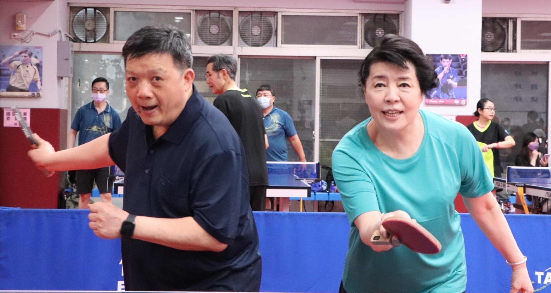 億光董事長葉寅夫與聲樂家簡文秀教授賢伉儷以桌球養生