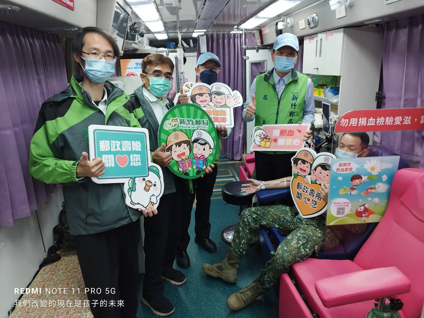 新竹郵局局長吳順吉親自到現場感謝國軍弟兄,能熱烈響應捐血活動。吳順吉局長表示,希望藉由本次捐血活動,拋磚引玉帶動社會大眾一起「捐熱血、獻愛心」,不但能助人又利己,也為社會挹注一份正能量。