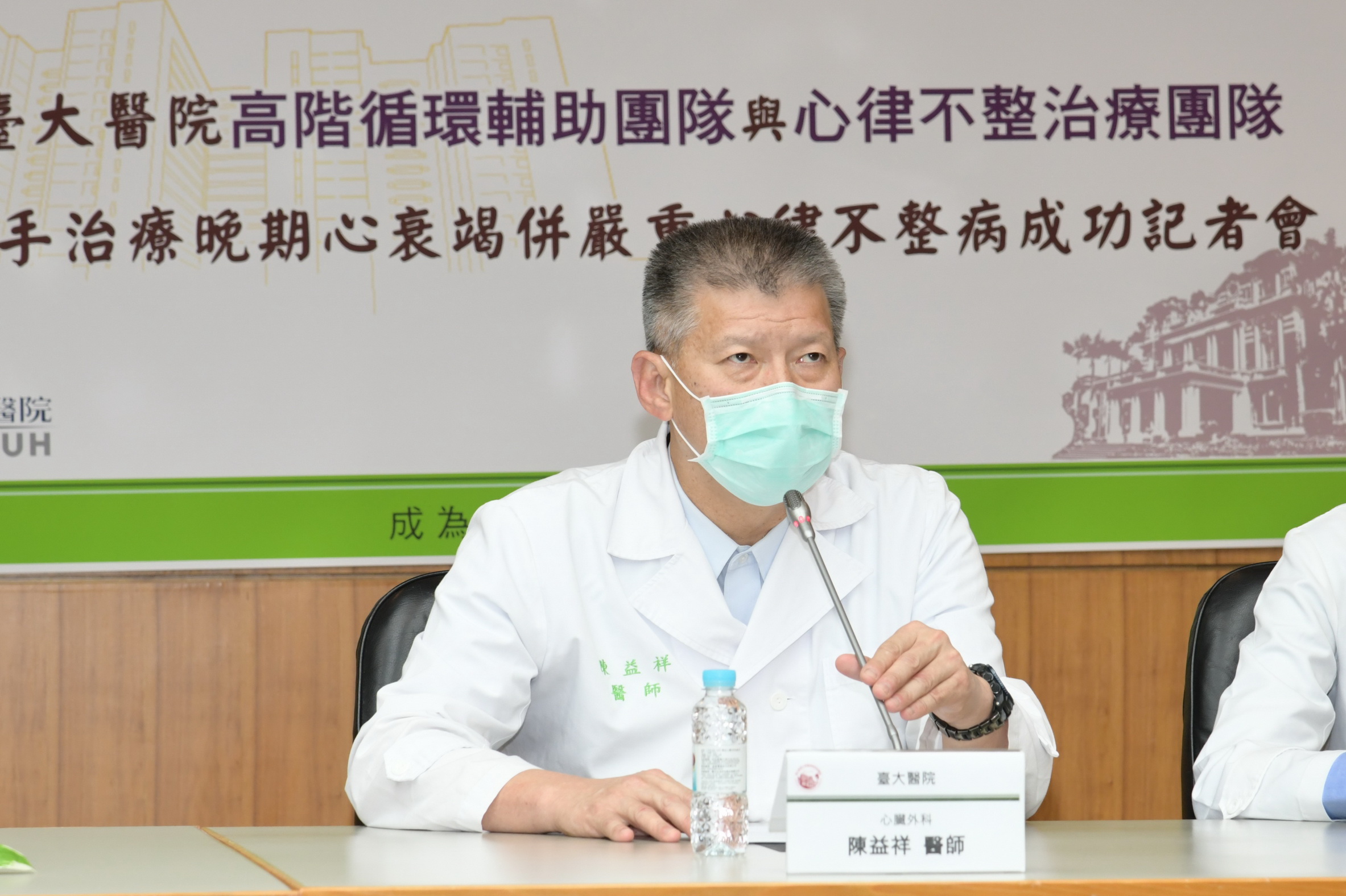 臺大醫院高階循環輔助團隊與心律不整治療團隊 攜手治療晚期心衰竭併嚴重心律不整成功記者會-心臟外科陳益祥醫師. 圖/臺大醫院 提供