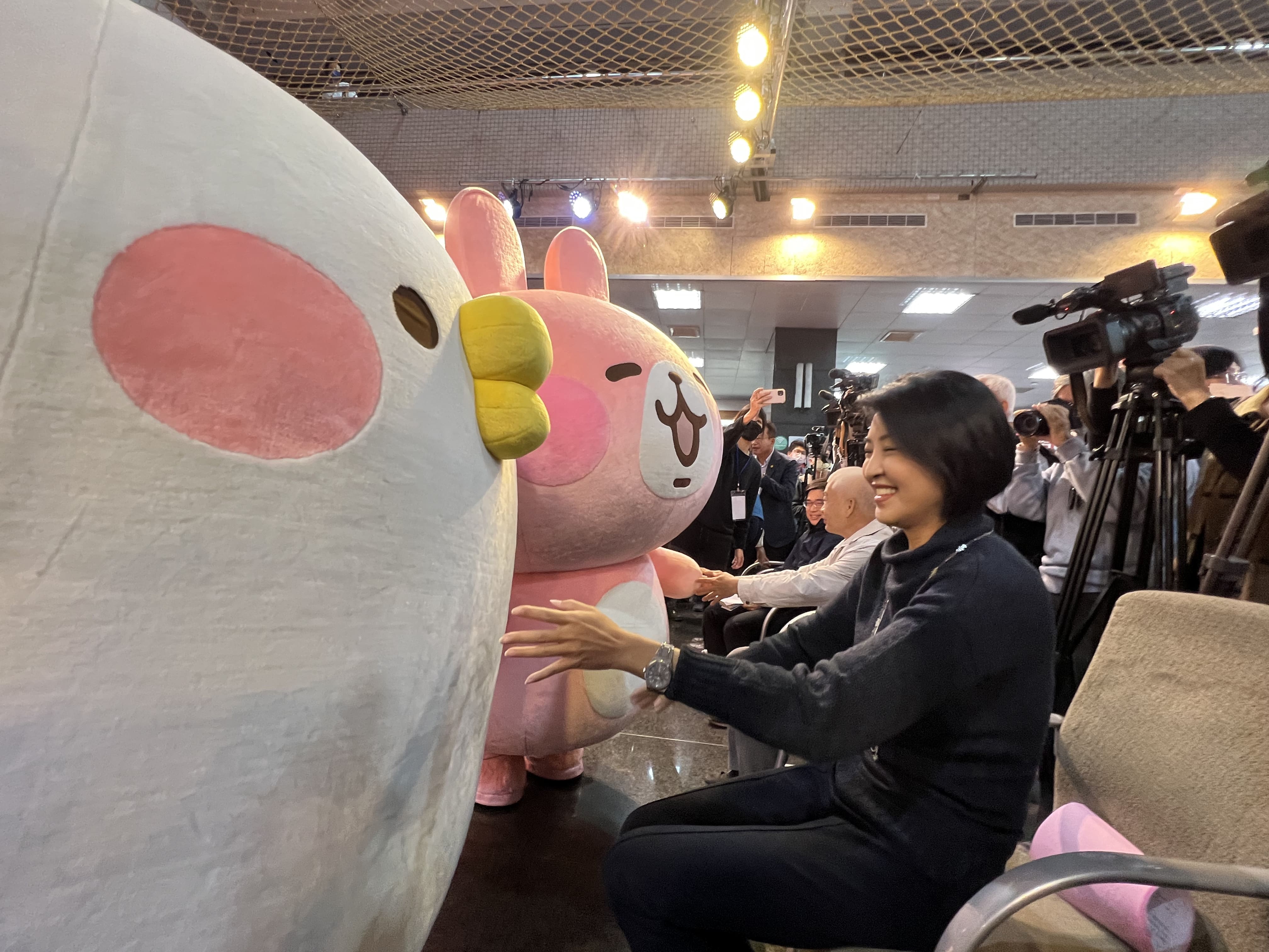 P助宇粉紅兔兔亮相打招呼 圖/南投縣政府提供