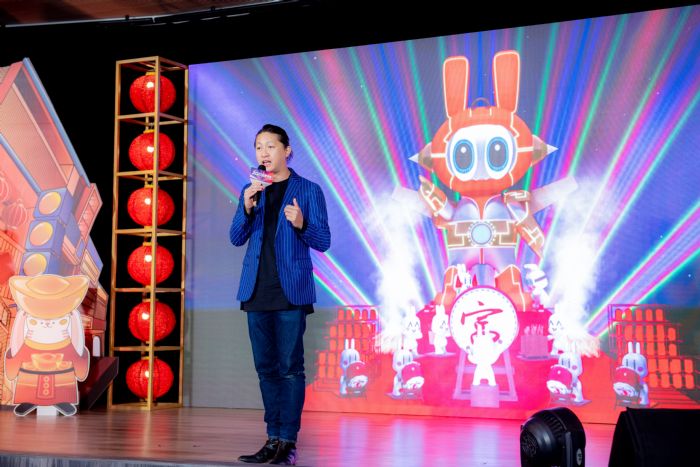 劉設計師指出,「FUTU未來兔」以三層塔式為主燈架構,分別有「優兔神鼓慶新春」、「富兔臨門齊豐收」及「桃園美好心境界」3個展演劇目,代表祈福、豐收及未來3種意象,搭配林強老師的樂曲,訴說桃園的過去、現在及未來。同時,燈區策展上融合茶葉、稻米及鐵道元素,藉此串聯富岡客庄的故事,以多樣化裝置藝術帶領市民朋友走入富岡,感受富岡風情,相當期待市民朋友欣賞主燈展演之際,也能在年節期間體驗富岡在地的故事。