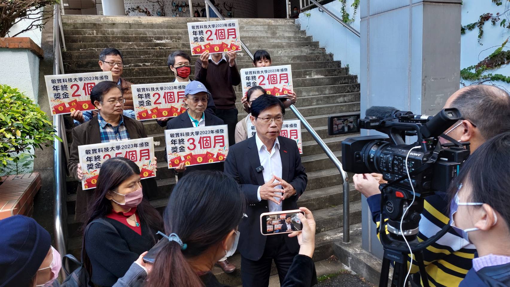 曾校長接受訪問時表示:目前整個私校體系受少子化的影響,面臨生存的挑戰,少數學校可能正常發薪也有困難,敏實科大因為各項績效表現良好,因此年終獎金採用企業績效方式彈性發放,最高3個月年終。