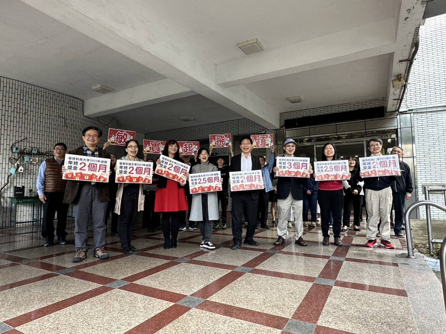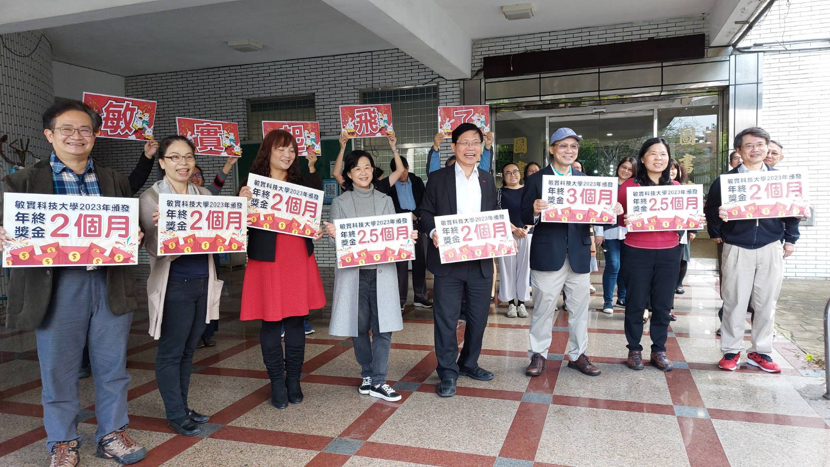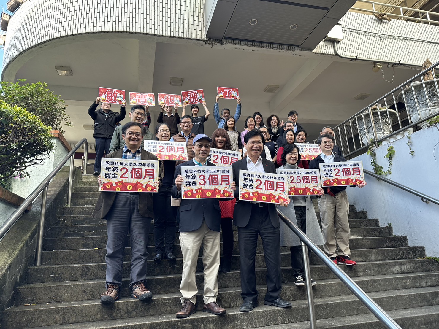 校務開新運,年終創佳績,敏實科技大學頒發年終獎金,獎勵優秀同仁,破記錄頒發年終獎金最高三個月,並獨創彈性研究費,最高達110%最高調幅50%,並鼓勵學校師生再攀績效高峰。集團承諾全面接收大四帶薪歐美實習,有機會免費讀大學,畢業後百萬年薪!