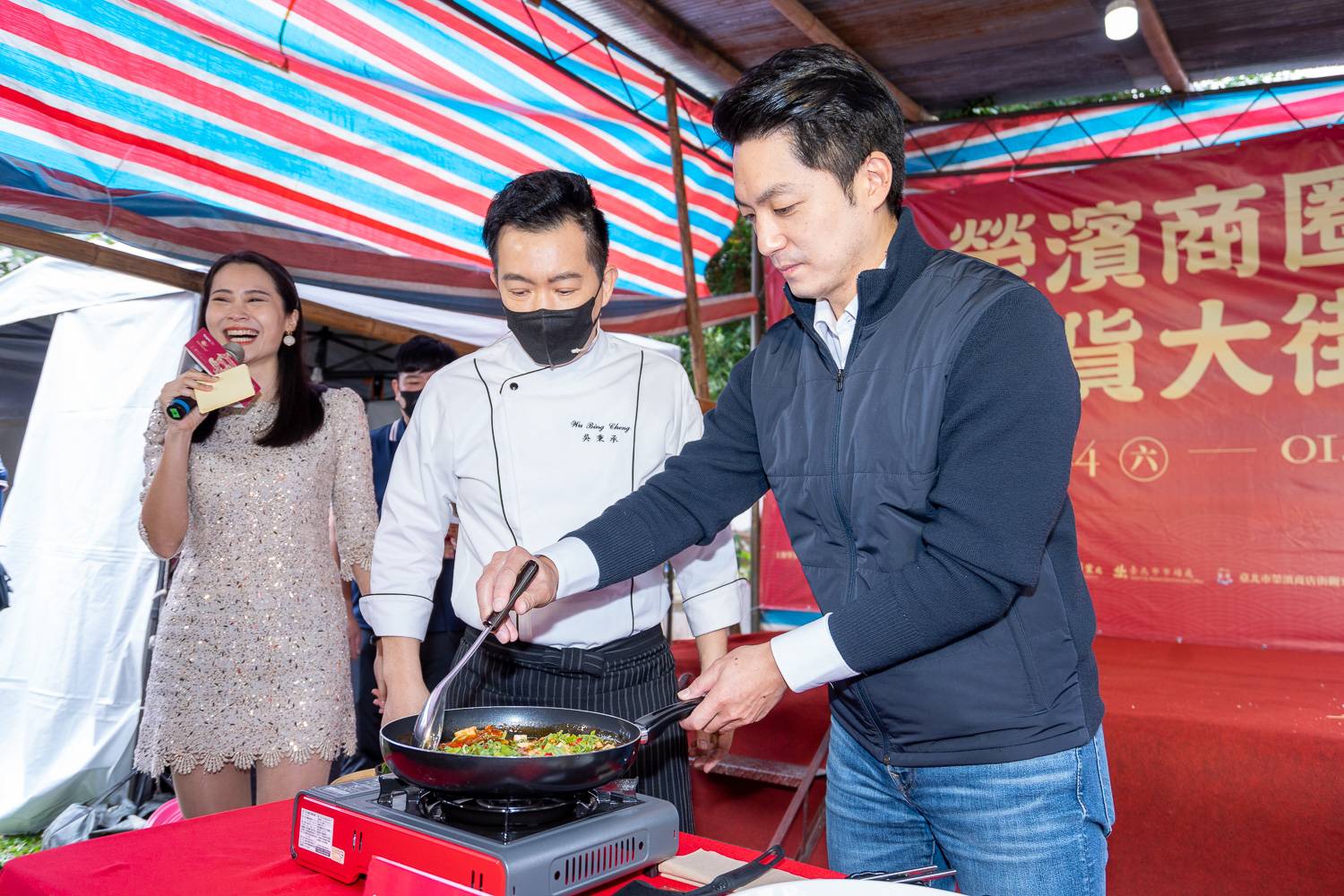 1_蔣萬安市長與型男主廚吳秉承示範製作年菜料理「鴻運麻婆燴鮮魚」