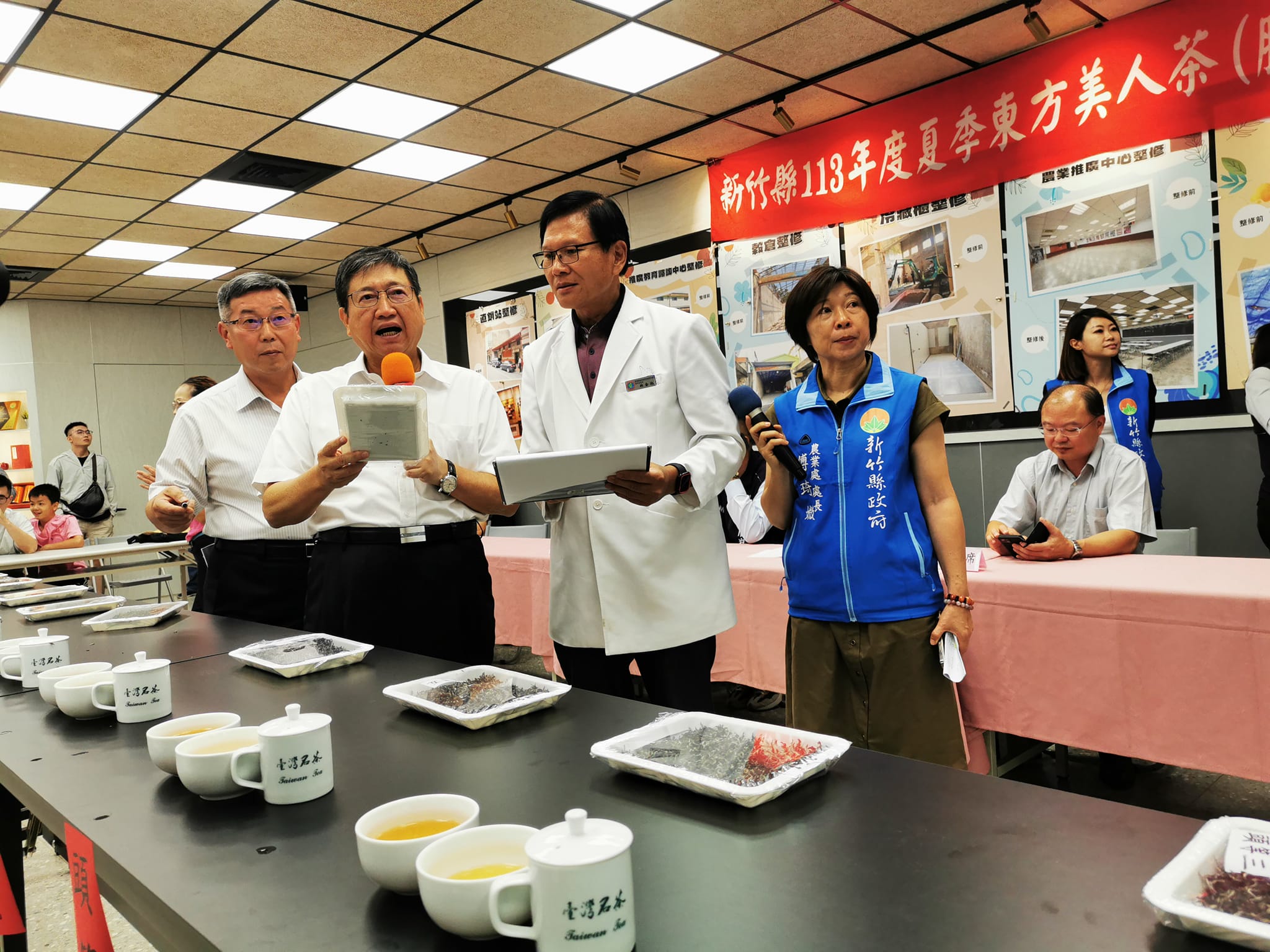 由於新竹縣夏季東方美人茶(膨風茶)優良茶評鑑為地方盛事,今年在北埔鄉農會舉辦,北埔鄉農會總幹事莊烘岡親自主持、峨眉鄉農會總幹事溫修琪、新竹縣農會總幹事李筱華等農會幹部均到場,北埔鄉長莊明增、峨眉鄉長王增忠以及新竹縣議員王辰翔也都出席,表達對此事的看重,亦有許多茶農、農友到場觀賽。