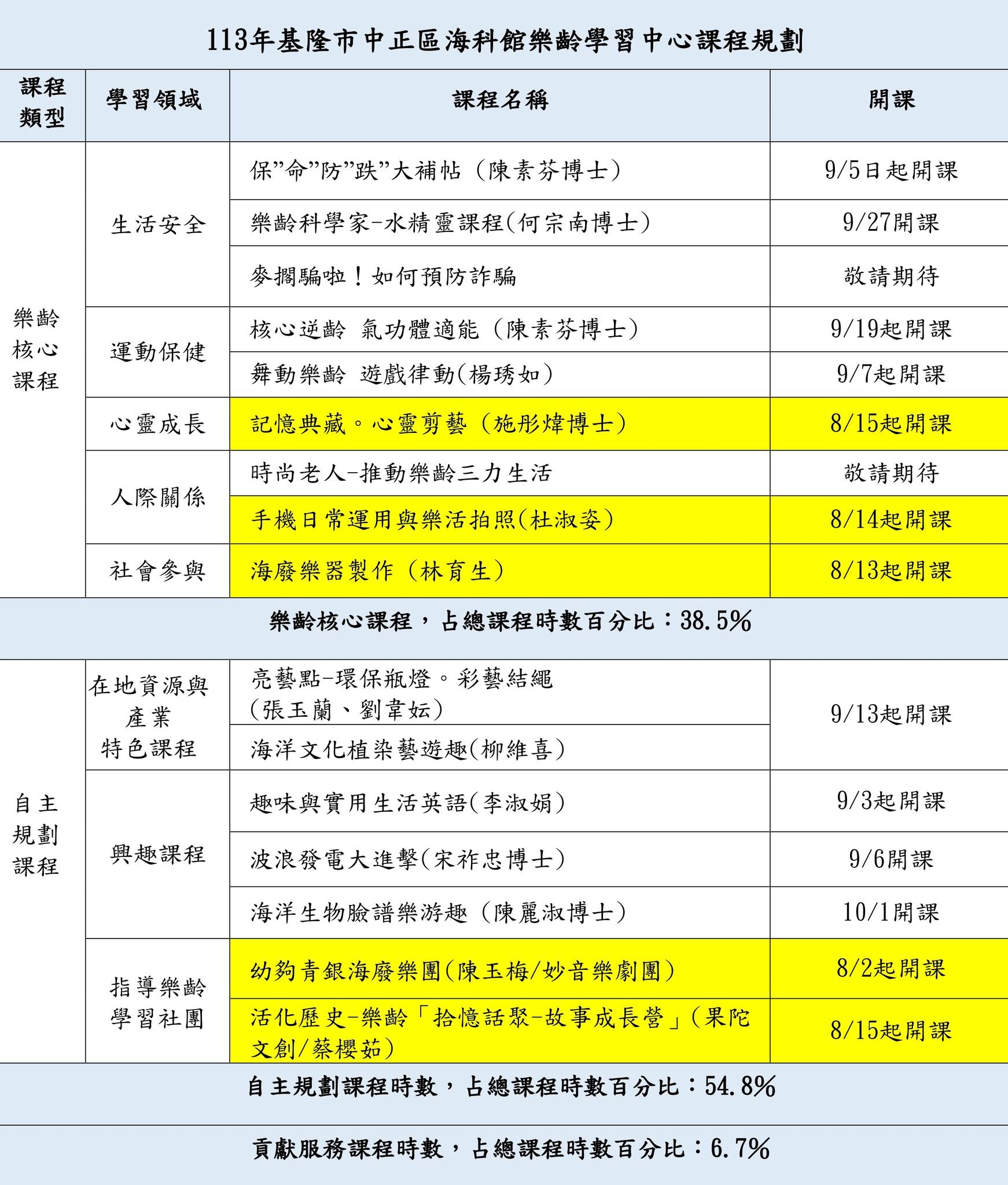 這些課程均屬獨特與創意,歡迎民眾鼓勵家中長輩走出來參與海科樂齡的學習,九月後之課程亦將陸續登場與報名,相關課程資訊與詳盡介紹及報名,可關注海科館樂齡網站-「基隆市中正區海科館樂齡學習中心」FB 粉絲專頁可獲最新資訊。