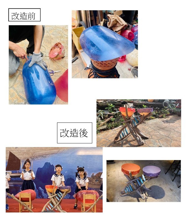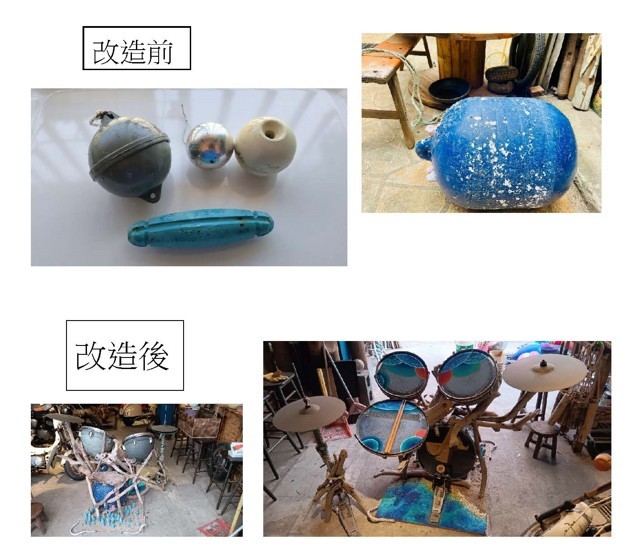 而「海廢樂器製作班」則是讓大家體驗與學習如何運用不要的浮球製作手鼓,完成的手鼓可以攜回大人、小孩一起玩促進家庭和樂。