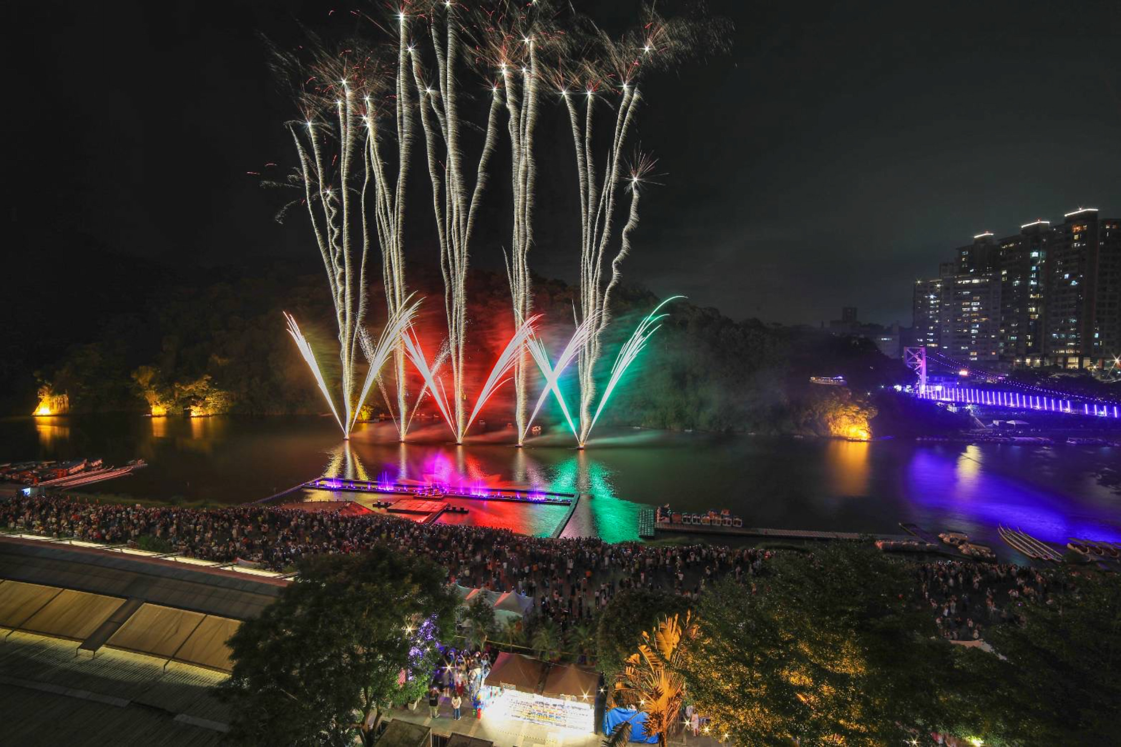 碧潭煙火將於8月14日、21日再度點亮碧潭夜空。今年夏夜,前往碧潭可以觀賞超萌巨型鯨魚噴水表演,還有全新推出動畫主題碧潭吊橋光雕秀,襯著碧潭河岸及吊橋光雕夜色,還可近距離享受花火綻放的浪漫與感動,邀請民眾把握精采瞬間,與家人一同前來碧潭觀賞。