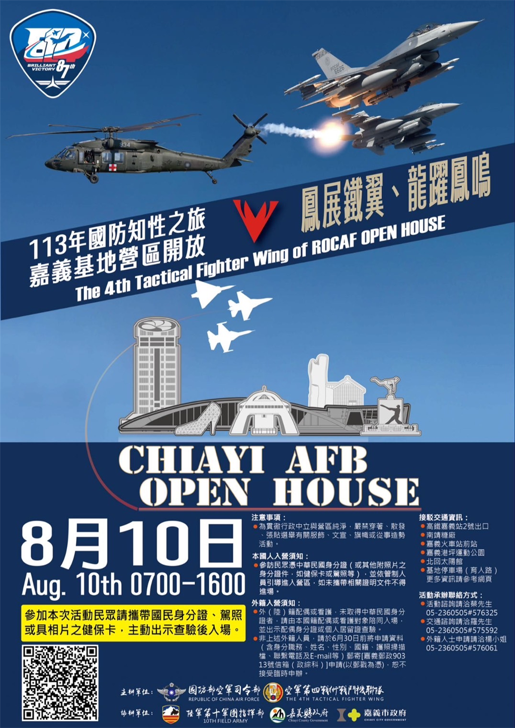 「113 年國防知性之旅」8月10日空軍嘉義基地營區開放
