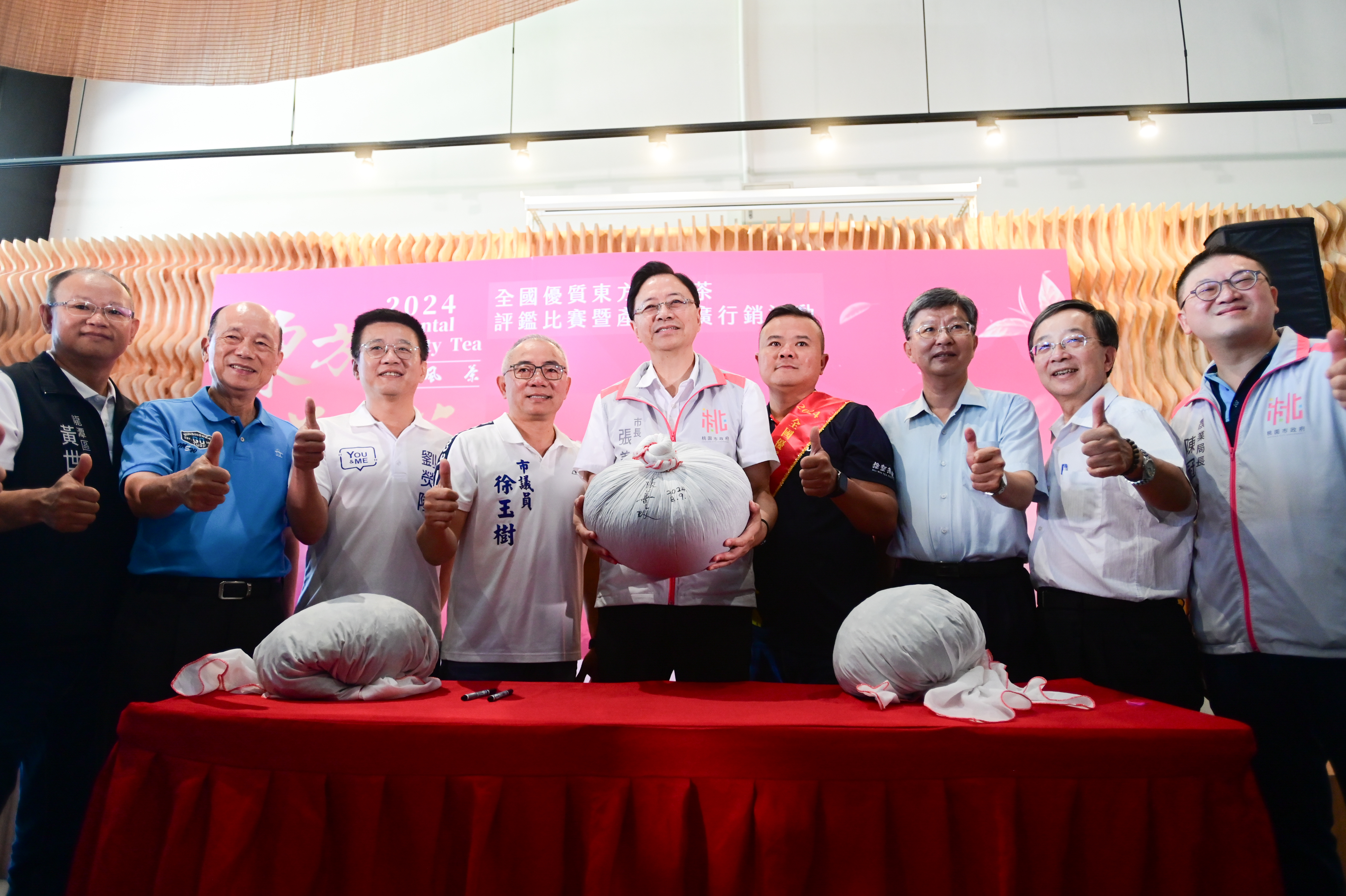 桃園市長張善政今(9)日上午前往龍潭區臺灣客家茶文化館,出席「2024 年全國優質東方美人茶評鑑比賽頒獎典禮」。