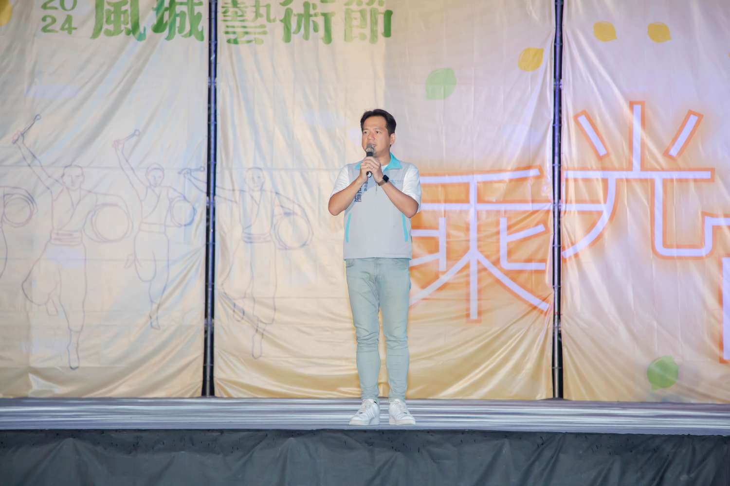 2024風城藝術節第5場今(10)日晚間在慈雲夜市登場,特別邀請到亞洲首屈一指、享譽國際的表演藝術團體「優人神鼓」帶來精采表演《乘光而行》,代理市長邱臣遠到場和市民一同靜心聆聽,感受內心深處與擊鼓共鳴,現場吸引超過3000位喜愛藝術的市民朋友到場觀賞演出,在時而溫潤內斂、時而澎湃激昂的鼓聲中,度過一場愉快的藝文周末夜。