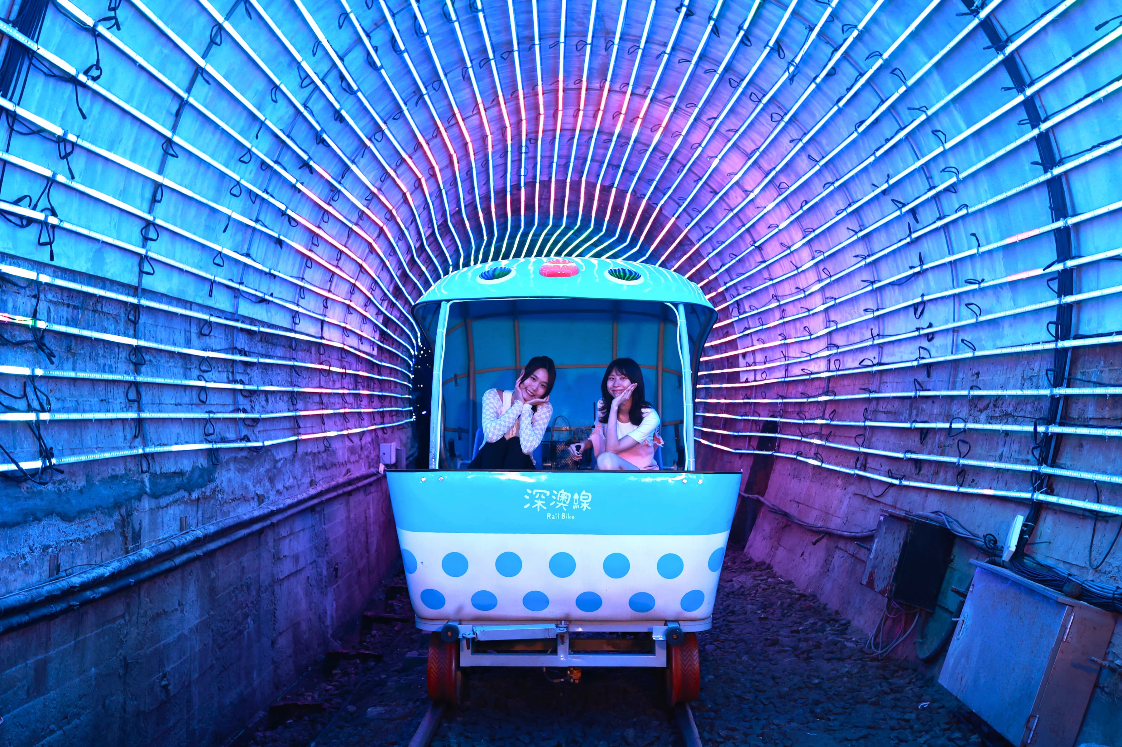深澳鐵道自行車在暑假期間,園區滿布閃亮燈飾,打造如夢似幻的星海景緻