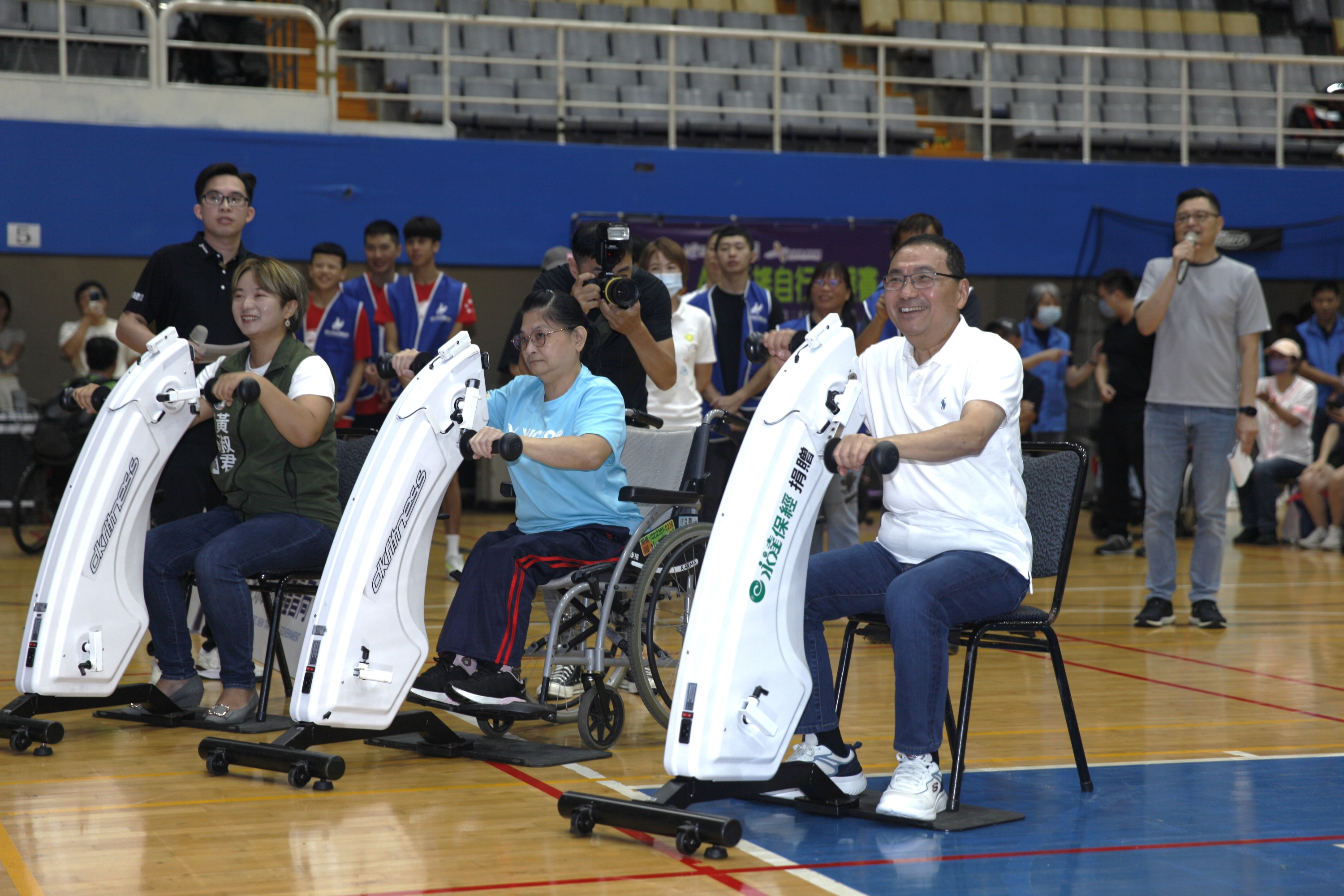 新北市長侯友宜表示,新北市將樹林體育園區打造為無障礙共融體育園區,裡面有完善友善的無障礙運動空間含身障健身房、全國最大的手搖車營運中心等,頗受好評,平時也提供身心障礙市民良好的運動去處,能在樹林體育園區找到多元的身障運動選擇,慢慢培養運動興趣,進而建立規律運動習慣。