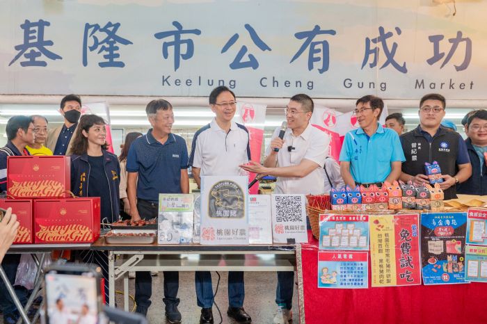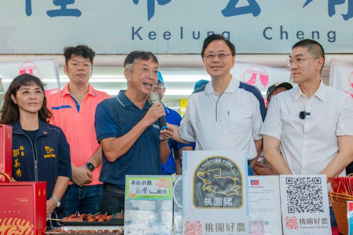 基隆市長謝國樑表示,很高興張市長蒞臨基隆市,親自向基隆市民們推薦桃園黑豬肉,分享優質的農畜產品。