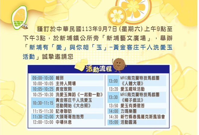 2024『新埔有「愛」·與你相「玉」-黃金客庄千人洗愛玉活動,舉辦地點在新埔鎮公所旁的藝文廣場,活動內容有千人洗愛玉、知名國內外表演團隊演出、還有好康