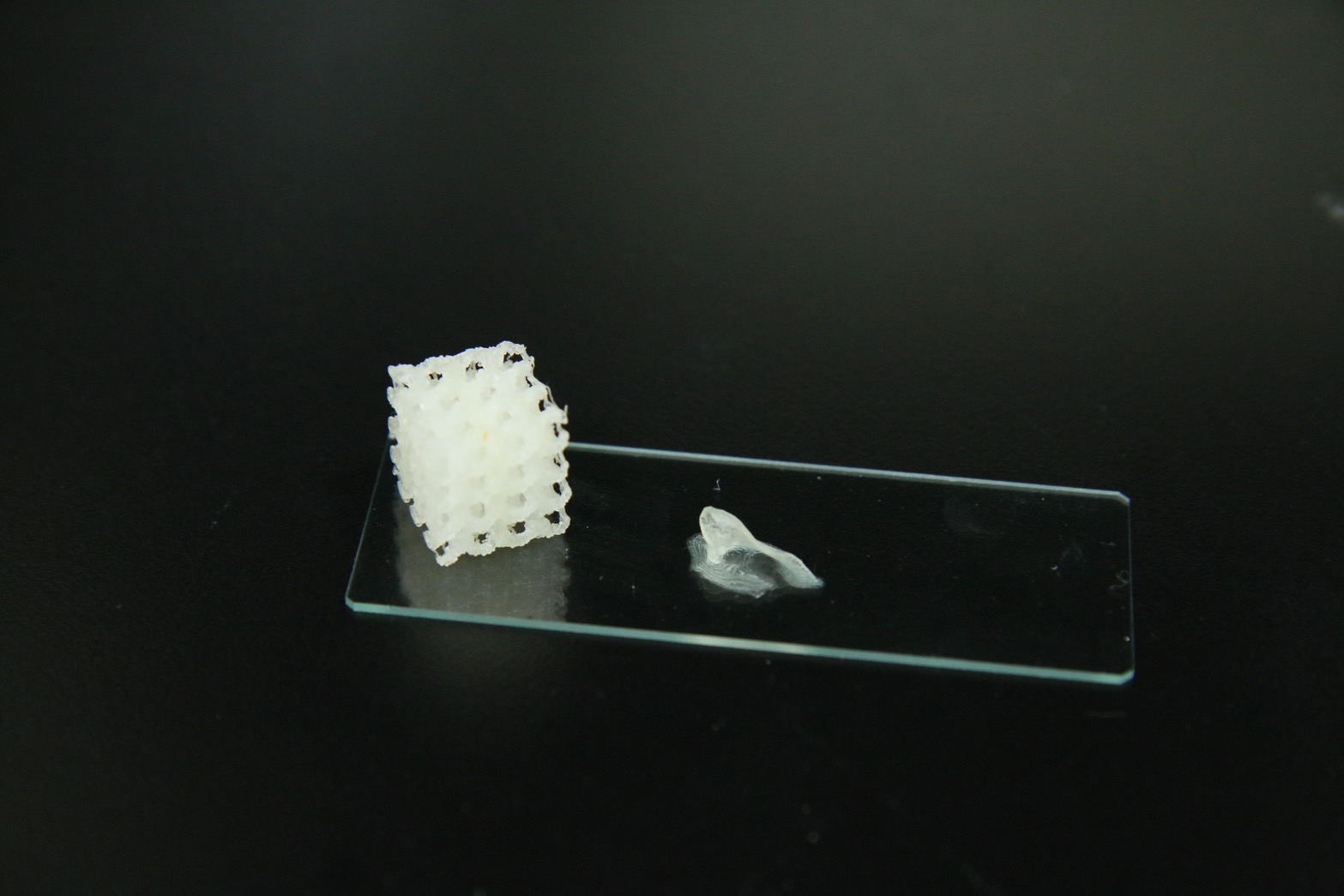 受到蜘蛛吐絲的啟發,國立陽明交通大學生物科技系李明家副教授開發出具有自我修復能力的奈米複合材料水凝膠,並成功透過仿生3D列印出螺旋24面體(Gyroid)細胞骨架與人體外耳。