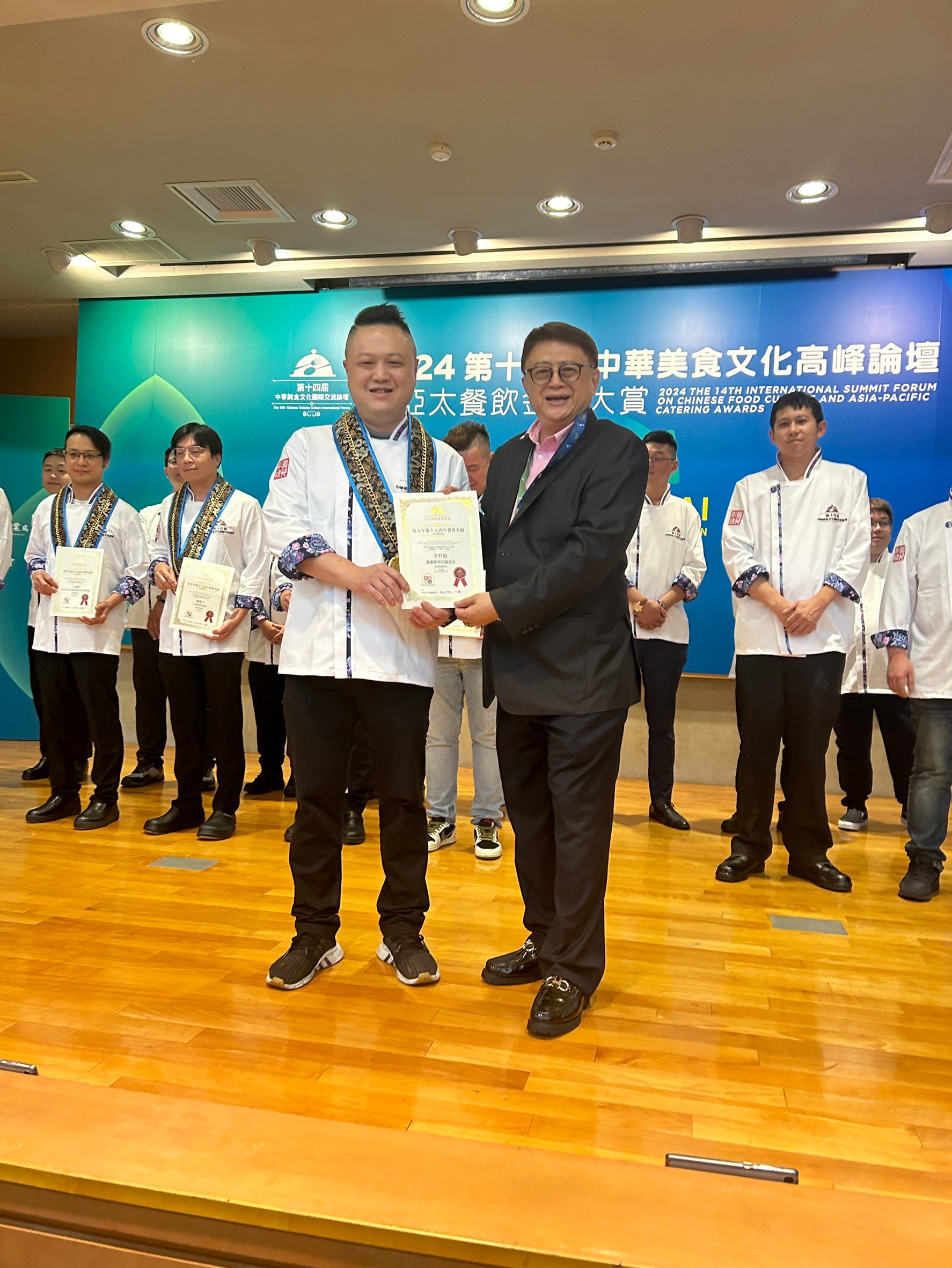 新悦花園酒店再傳捷報,2024第十四屆中華美食文化國際高峰論壇,是華人地區餐飲業與飯店業的年度盛會,現場安排專業名師為最新的市場趨勢帶來精彩豐富的主題論壇,同時現場也集結眾多廚藝精湛的好手相互切磋,藉由此論壇整合國際華人觀光餐飲資源平台,引領著台灣觀光相關產業接軌國際,與帶動未來永續發展,新悦李哲維行政主廚及頤粵軒從各大好手及優秀店家中脫穎而出,榮獲「亞太十大菁英名廚」及「亞太十大名店」之榮耀,成功將新悦花園酒店推向國際。