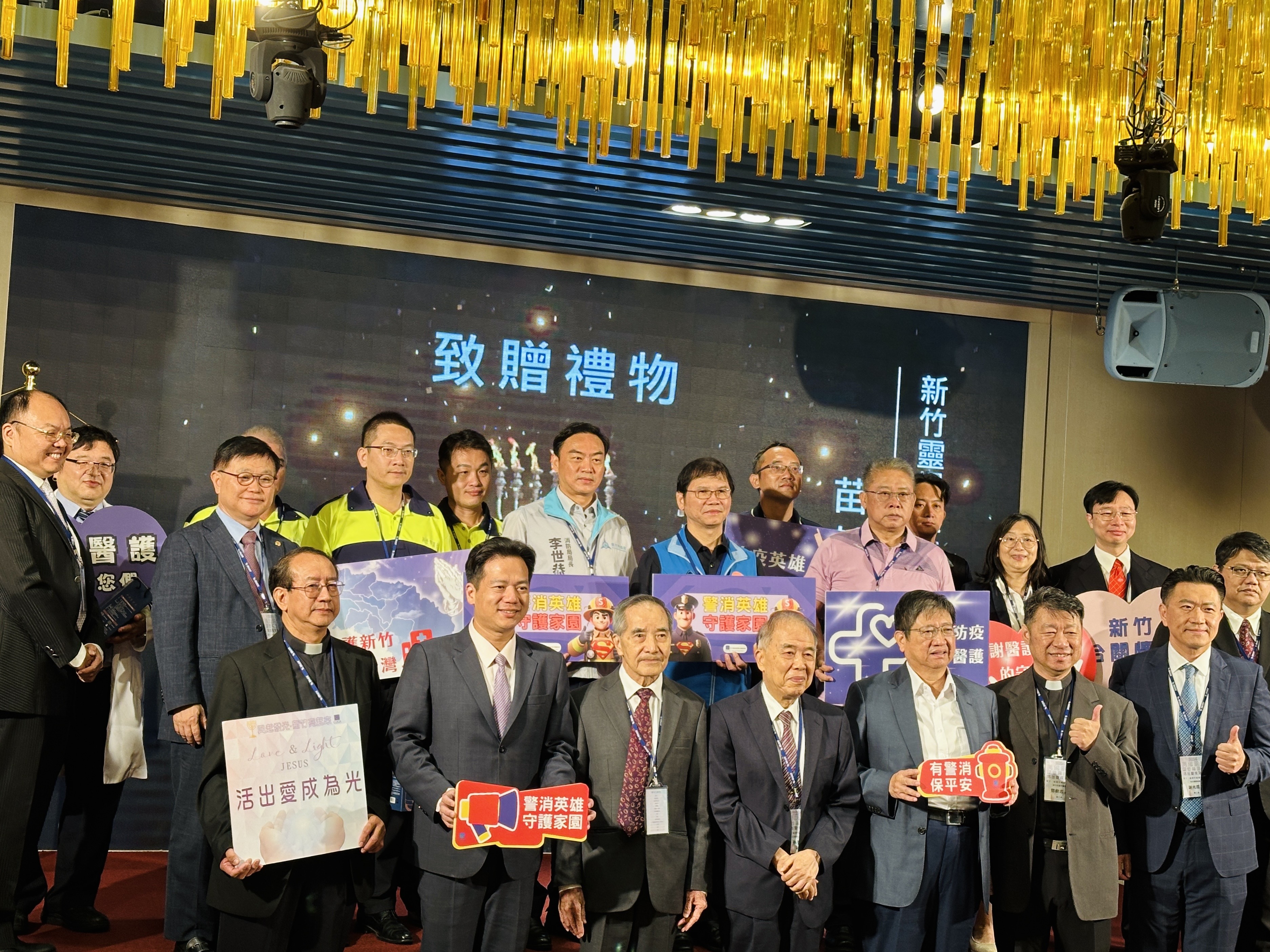 大會特別請新竹的警消醫護代表到場,感謝神賜給我們一群無私奉獻,充滿愛心與勇敢的警消醫護人員。當我們還在休息睡覺時,與家人歡聚時,他們仍然不辭辛勞,默默守護,使我們可以安然享受幸福時刻。會中,新竹縣消防局陳中振局長、新竹市消防局李世恭局長、新竹縣市警察代表、大安醫院謝煒銘院長與各團隊代表參加,領受祝福,場面溫馨。